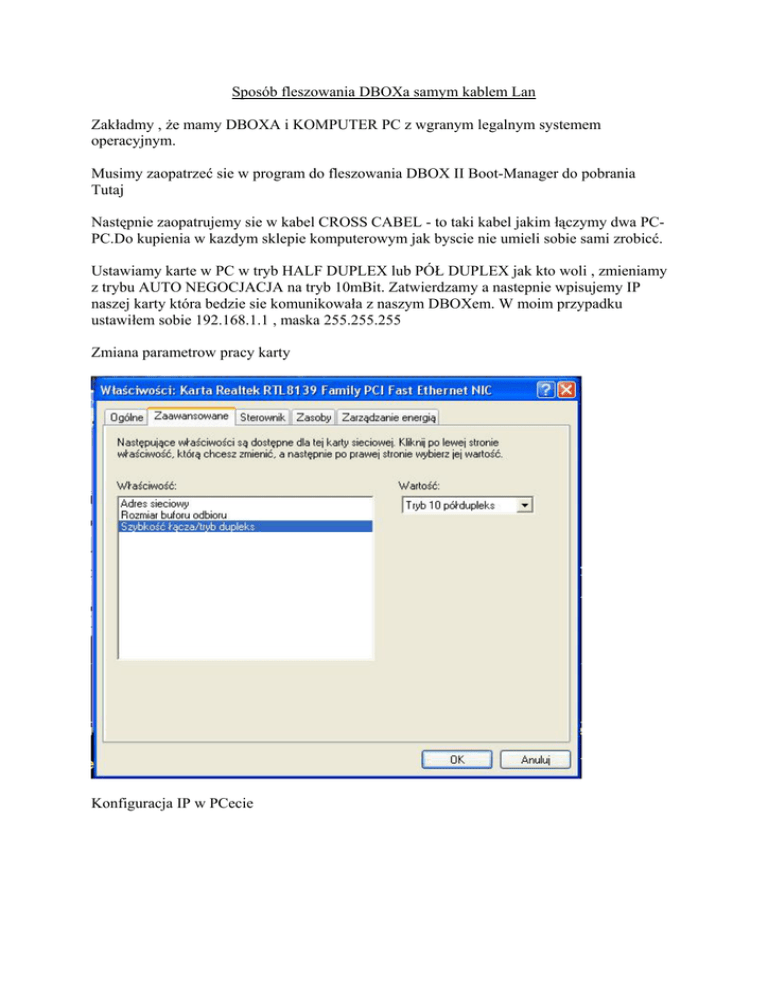 Sposób flashowania dboxa samym kablem LAN
