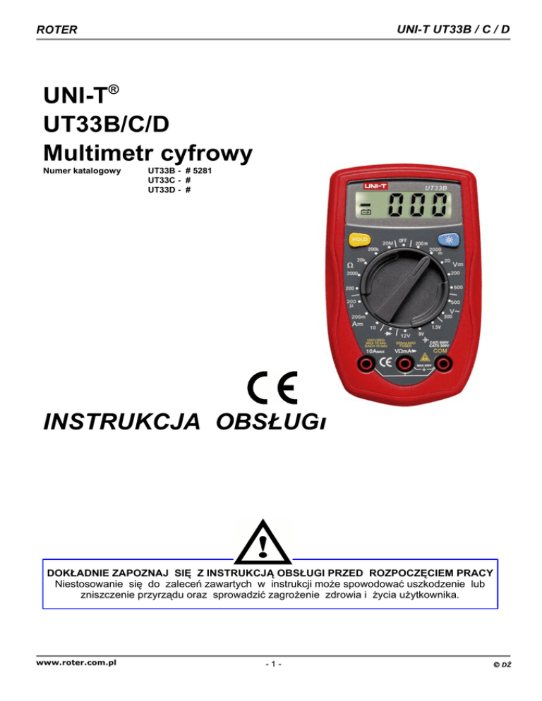 UT33B/C/D Multimetr cyfrowy INSTRUKCJA OBSŁUGI UNI-T®