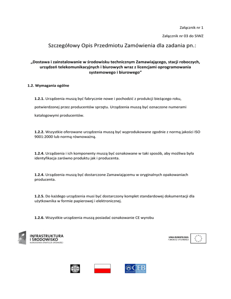 Szczegółowy Opis Przedmiotu Zamówienia dla zadania pn.:
