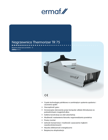 Nagrzewnica Thermorizer TR 75 Broszura dotycząca produktu · D Edition 10.13 • Czysta technologia palnikowa w zamkniętym systemie spalania i usuwania spalin • Oszczędność gazu • Innowacyjne sterowanie przez komputer układu klimatyzacji za pośrednictwem magistrali eBus • Solidna konstrukcja ze stali szlachetnej • Możliwość nastawienia kierunku wyprowadzania powietrza • Prosty montaż • Łatwość konserwacji i możliwość czyszczenia myjkami wysokociśnieniowymi • Wysoka efektywność energetyczna • Bezpieczna eksploatacja 2 · TR 75 · Edition 10.13 Zastosowanie Przy doborze właściwego systemu ogrzewania dla budynków inwentarskich decydującymi kryteriami są optymalny rozkład temperatury, obniżenie emisji CO2, oszczędność energii i eliminacja szkodliwego wpływu na środowisko. Nagrzewnica Thermorizer została skonstruowana specjalnie dla takiego zakresu wykorzystania. Jest ona stosowana do precyzyjnego i kontrolowanego ogrzewania budynków inwentarskich w hodowli zwierząt i do ogrzewania szklarni w ogrodnictwie. Nagrzewnica Thermorizer jest skonstruowana jako zamknięty system spalania i ogrzewania. System ten jest niezależny od dopływu powietrza z pomieszczenia i gwarantuje utrzymanie czystego klimatu w budynku inwentarskim – bez CO2. Wszelkie spaliny zostają odprowadzone przez komin – powietrze wewnątrz ogrzewanego pomieszczenia pozostaje świeże i czyste. Ilość tlenu dostępna dla zwierząt nie ulega redukcji w wyniku procesu spalania. Nagrzewnica Thermorizer wytwarza laminarny strumień powietrza. Oznacza to, że w przeciwieństwie do tradycyjnych nagrzewnic nie występuje żaden widoczny przepływ burzliwy (zawirowania/strumienie poprzeczne). W razie potrzeby można nastawić kierunek wyprowadzania strumienia powietrza za pomocą deflektora. Liczne pomiary wykonane w praktyce wykazały, że w porównaniu z nagrzewnicami bezpośrednimi zużycie energii przez nowe urządzenia jest znacznie niższe. Przy sprawności do 98 % można uzyskać wyjątkowo wysoki poziom oszczędności energii. System nagrzewnicowy obejmujący wykorzystanie jednej lub kilku nagrzewnic można eksploatować z regulacją stopniową lub modulacyjną do mocy 75 kW przy wykorzystaniu gazu ziemnego lub wszelkich mieszanin gazów ciekłych. Przykłady wykorzystania Chów zwierząt Optymalny klimat jest w hodowli zwierząt najważniejszym czynnikiem decydującym o zdrowiu i kondycji pogłowia. Doprowadzanie powietrza i ciepła jest niezbędne dla regulacji klimatu w pomieszczeniach inwentarskich. Istotną rolę odgrywają w tym przypadku temperatura, wilgotność i zawartość CO2. Od roku 2010 istnieje w krajach Unii Europejskiej prawny wymóg kontroli jakości powietrza w tuczarniach. Dopuszczalne stężenie CO2 w powietrzu pomieszczenia inwentarskiego oznacza często konieczność zmniejszenia liczby zwierząt w pomieszczeniu, jeśli utrzymanie maksymalnego stężenia CO2 na poziomie 3000 ppm jest niemożliwe. Bez uwalniania CO2 i NOx w pomieszczeniach dla zwierząt, nagrzewnica Thermorizer TR optymalne spełnia takie wymogi. Aby w możliwe jak najwyższym stopniu ograniczyć groźbę infekcji, konieczne jest regularne czyszczenie pomieszczeń inwentarskich. Im bardziej odporne są nagrzewnice na czyszczenie myjkami wysokociśnieniowymi i im bezpieczniejszy jest przebieg czyszczenia, tym łatwiejsze jest utrzymanie pomieszczeń inwentarskich w czystości. Nagrzewnica Thermorizer i jej układ sterowania wykorzystujące nową koncepcję obudowy są doskonale przystosowane do intensywnych czynności czyszczenia. Podsumowanie: cel jakim jest uzyskanie optymalnego klimatu w pomieszczeniach inwentarskich przy niskich kosztach inwestycji i eksploatacji każdy hodowca może osiągnąć przez zastosowanie nagrzewnicy Thermorizer. Nagrzewnica Thermorizer wytwarza w pomieszczeniach dla zwierząt tylko ciepło – bez substancji szkodliwych. TR 75 · Edition 10.13 · 3 ACU Thermorizer TR 75 w kurniku przemysłowym Układ bezpośredniego zapłonu elektrycznego i praca palnika są nadzorowane przez układ jonizacyjny. W przypadku wygaśnięcia płomienia lub niepowodzenia zapłonu, układ sterowania natychmiast odcina dopływ gazu. Za pomocą czujnika temperatury układ sterowania ACU (Air-heater Control Unit) reguluje temperaturę wymiennika ciepła TR w sposób w pełni automatyczny. W ten sposób zapewniona zostaje niemal stała temperatura wydmuchu ogrzanego powietrza i to już w chwili uruchomienia urządzenia. Można tym samym zmniejszyć różnice temperatur w pomieszczeniu inwentarskim i zminimalizować koszty ogrzewania. Nagrzewnica TR wykonana ze stali szlachetnej jest odporna na działanie czynników zewnętrznych, takich jak brud i wilgoć. Jest wewnętrznie i zewnętrznie odporna na czyszczenie myjkami wysokociśnieniowymi. Konstrukcja wewnętrzna zapewnia sprawny odpływ wody z mycia. Wymiennik ciepła jest łatwo dostępny pod odchylaną pokrywą rewizyjną. Elastyczny w użyciu wspornik ścianowy umożliwia łatwy montaż przez jedną osobę. Położenie montażu względem komina można regulować w poziomie. W pełni automatyczne sterowanie (ACU = Air-heater Control Unit) nagrzewnicy Thermorizer umożliwia bezpośrednie wysterowanie nagrzewnicy przez komputer układu klimatyzacji lub za pomocą termostatu pokojowego. Możliwy jest także tryb obsługi ręcznej. Poza czytelną strukturą obsługi nagrzewnica TR zawiera także lampki sygnalizacyjne stanu, które już z dala informują personel o aktualnym stanie urządzenia. Dalsze diody świecące LED wskazują tryb pracy, a dodatkowy wyświetlacz ułatwia analizę nieprawidłowości w przypadku wystąpienia zakłócenia. Deflektor Deflektor stanowi ramę mieszczącą liczne płyty żaluzjowe, których ustawienie można regulować w różnych kierunkach. Deflektor zostaje nasadzony w prosty sposób na otwór wylotowy nagrzewnicy Thermorizer. Położenie płyt żaluzjowych w ramie można regulować w poziomie i w 