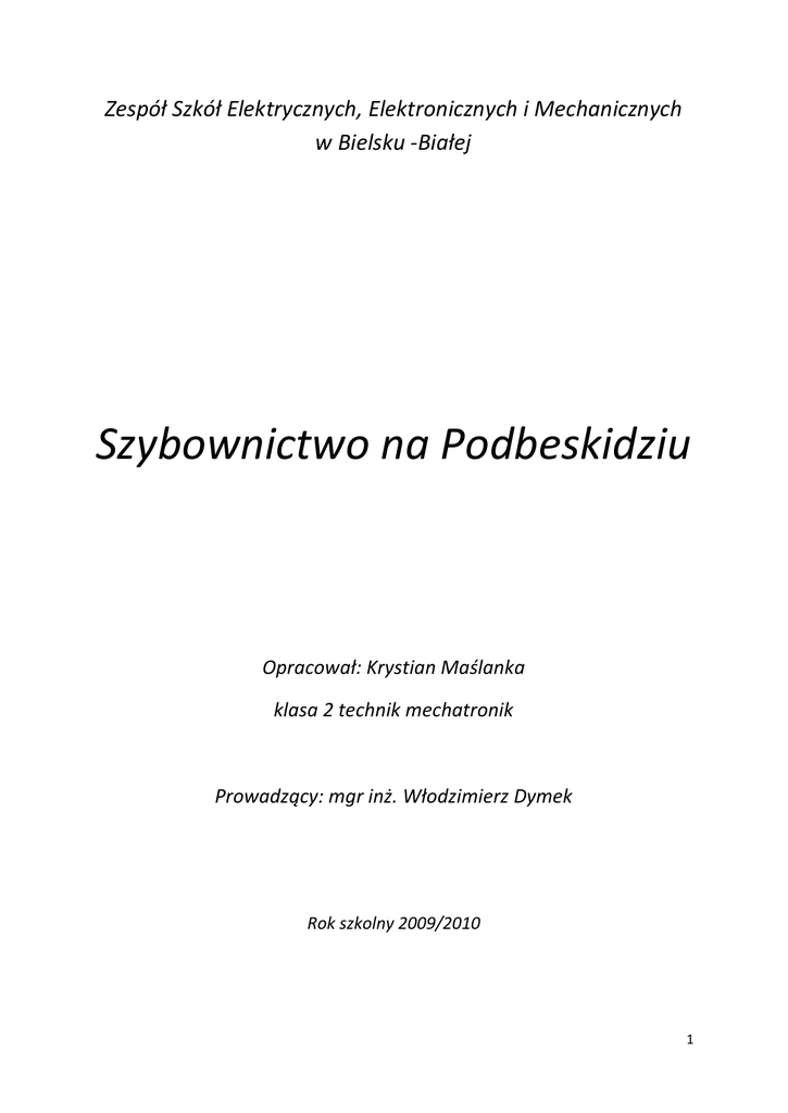 Zespół Szkół Elektrycznych, Elektronicznych i Mechanicznych w Bielsku -Białej Szybownictwo na Podbeskidziu Opracował: Krystian Maślanka klasa 2 technik mechatronik Prowadzący: mgr inż. Włodzimierz Dymek Rok szkolny 2009/2010 1 Spis treści 1. Od autora ................................................................................................................ 3 2. Moje lotnicze motto ................................................................................................ 4 3. . Odwieczne marzenie człowieka, latad jak ptaki ...................................................... 5 4. O co w ogóle chodzi w szybownictwie .................................................................... 11 5. Co można osiągnąd .................................................................................................. 16 6. Historia szybowisk na Podbeskidziu ........................................................................ 19 Szkoła szybowcowa na kopcu Lipnickim ............................................................. 20 Szybowisko na górze Chełm koło Goleszowa ..................................................... 25 Szkoła szybowcowa na górze Żar ........................................................................ 30 Lotnisko w Bielsku – Szkoła pilotów LOPP .......................................................... 36 Aeroklub Bielsko-Bialski w latach 1945-2000 ..................................................... 39 7. Najwybitniejsi szybownicy z Podbeskidzia .............................................................. 46 Adam Zientek ...................................................................................................... 47 Franciszek Kępka Junior ...................................................................................... 49 Sebastian Kawa ................................................................................................... 52 Bolesław Zoo ....................................................................................................... 55 8. Pierwszy przelot szybowcowy 500km z Bielska....................................................... 57 9. Rodzime konstrukcje szybowców ............................................................................ 59 10. Podsumowanie i Bibliografia ................................................................................... 127 2 Od autora: Temat mojej pracy zaczerpnąłem z pasji mojego dziadka, jestem wnukiem pilota, jednego z pierwszych instruktorów na Podbeskidziu po wojnie, który również wpisał się w historię Aleksandrowickiego lotniska jako wyczynowiec. 29 listopada 1951roku uzyskał podczas lotu falowego wysokośd 3430m oraz 11 czerwca 1956 roku wykonał przelot docelowy na trasie Bielsko-Warszawa o długości 305km. Za te dokonania 31 lipca 1956 roku otrzymał złotą odznakę szybowcową. Słuchając zawsze uważnie jego opowieści lotniczych, zrodziło się we mnie marzenie latania, które z biegiem czasu zmieniło się w pasję. Obecnie jestem uczniem drugiej klasy technikum Zespołu Szkól Mechanicznych, Elektrycznych i Elektronicznych z Bielska-Białej na kierunku technik mechatronik, a poza zajęciami szkolnymi pilotem szybowcowym Aeroklubu Bielsko-Bialskiego. Celem tej pracy jest chęd złożenie hołdu wszystkim tym, którzy oddali się bez reszty pięknemu i elitarnemu mimo wszystko sportowi jakim jest szybownictwo, rozsławid imię zasłużonych z Podbeskidzia oraz zarazid swą pasją osoby, które szukają zajęcia dla siebie. Byd może szybownictwo stanie się także ich pasją. Mam nadzieję że pomoc dydaktyczna zawarta w tej pracy znajdzie szersze zastosowanie np. podczas szkoleo teoretycznych na kursach lotniczych oraz do prelekcji szkolnych. Chciałbym podziękowad wszystkim tym którzy pomogli mi podczas pisania tej pracy, przede wszystkim: Instr. Pil. Bolesławowi Maślance, Instr. Pil. Leszkowi Przybylioskiemu, Inst. Pil. Jerzemu Oślakowi, Inst. Pil. Markowi Matwiejczykowi, Instr. Pil. Longinowi Blademu, Instr. Pil. Marcinowi Błusiowi, Panu Wojciechowi Gorgolewskiemu, Mgr. Inż. Włodzimierzowi Dymkowi Oraz wszystkim tym, których z imienia nie wymieniłem, a którzy mieli wkład w to, co zrobiłem, kim jestem obecnie oraz że mogę dzielid się w jakiś sposób tym co mam. Mam nadzieję że dzięki tej lekturze, ktoś znajdzie w lotnictwie taką radośd i cel życia jak ja. Z lotniczym pozdrowieniem, 3 Moje lotnicze motto „Gdy człowiek chod raz wzbije się w powietrze, już zawsze będzie patrzył w niebo. Bo tam już był i tam dalej podąży.” Leonardo da Vinci „Bo latanie to nie tylko przebywanie w powietrzu, ale wszystko to jak żyjemy, co robimy i co dodaje nam skrzydeł” „Czasami mam wrażenie, że niektórzy bardziej sobie cenią latanie, od siebie” 4 Odwieczne marzenie człowieka... latad jak ptaki Człowiek spoglądając w niebo zawsze pragnął wzbid się w powietrze od zawsze. Od tysięcy lat marzył by latad tak jak ptaki. To jedno z największych pragnieo. Wielu śmiałków podejmowało takie próby... często płacąc za to życiem. Już w 1250 roku angielski filozof Roger Bacon napisał rozprawę traktującą o możliwościach lotu człowieka. U schyłku średniowiecza, w latach 1490 – 1519 Leonardo da Vinci zajął się także zagadnieniami lotnictwa. Pozostawione przez niego notatki i szkice rozwiązao konstrukcyjnych do dziś budzą podziw dla jego geniuszu. Opracował bowiem teorię spadochronu, badał możliwości lotu człowieka przy użyciu ruchomych skrzydeł, aparatu podobnego do dzisiejszego śmigłowca i balonu... wyprzedzając swoją epokę o ponad 400 lat! Wygląd latającej maszyny ze skrzydłami, strukturą przypominającymi skrzydła nietoperza Zaskakujące jest, że pierwsi śmiałkowie którzy oderwali się od ziemi i bezpiecznie na nią wrócili dokonali tego zupełnie inny sposób niż można by przypuszczad. Pierwsze udane loty człowieka odbyły się bowiem przy u