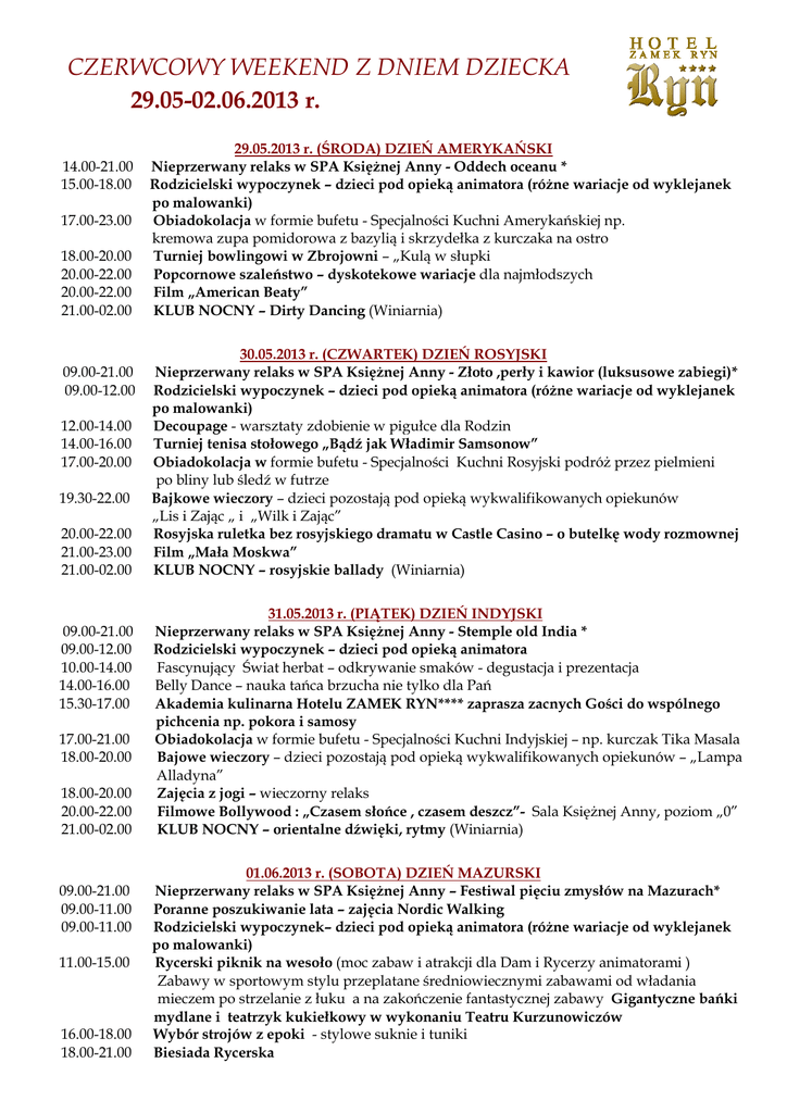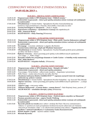 CZERWCOWY WEEKEND Z DNIEM DZIECKA 29.05