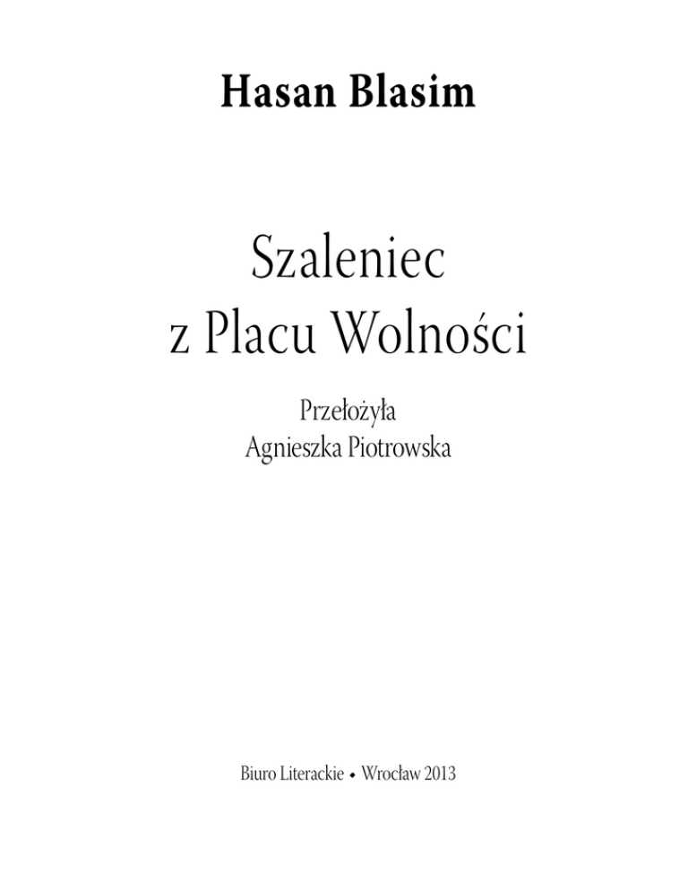 Hasan Blasim Szaleniec z Placu Wolności Przełożyła Agnieszka Piotrowska Biuro Literackie • Wrocław 2013 3 Ekspozycja zwłok Z anim wyjął nóż, powiedział: – Po tym, jak przestudiujesz teczkę, musisz przedstawić krótki szkic na temat tego, w jaki sposób proponujesz zabić swojego pierwszego klienta i wyeksponować w mieście jego zwłoki. Ale nie znaczy to, że to, co proponujesz w szkicu, zostanie przyjęte. Jeden ze specjalistów przeanalizuje zaproponowaną metodę i albo ją zaakceptuje, albo zaproponuje inną. Ten system jest stosowany także w przypadku profesjonalistów na każdym etapie ich pracy – nawet po zakończeniu etapu szkolenia i testu, któremu zostaniesz poddany. Nie martw się, bez względu na wszystko otrzymasz pełne wynagrodzenie. Nie chcę się teraz wdawać w szczegóły. Będę cię informował o tych sprawach na bieżąco. Po tym, jak otrzymasz teczkę klienta, nie będziesz mógł zadawać pytań bezpośrednio, tak jak dotychczas. Będziesz musiał przedstawiać swoje pytania na piśmie. Wszystkie twoje pytania, propozycje i wnioski zostaną udokumentowane w twojej osobistej teczce. W żadnym wypadku nie wolno ci wysyłać mi wiadomości o sprawach dotyczących pracy ani do mnie telefonować. Zapiszesz swoje pytania na specjalnym formularzu, który później ci dostarczę. Ważne jest, abyś już teraz z uwagą i cierpliwością przystąpił do studiowania teczki klienta. Pragnę cię zapewnić, że nie przestaniemy z tobą współpracować, nawet jeśli pierwsze zadanie ci nie wyjdzie. Jeśli ci się nie powiedzie, zostaniesz przeniesiony do innego działu z tym samym wynagrodzeniem. Ale muszę ci jeszcze raz przypomnieć – nie zaakceptujemy twojej odmowy współpracy, po tym, jak odbierzesz pierwsze wynagrodzenie. Mamy tu surowe przepisy i w przypadku gdy zarząd zgodzi się zakończyć z tobą współpracę, zostaniesz poddany wielu testom, które mogą 63 ci zająć dużo czasu. W archiwach przechowujemy dla przykładu teczki innych współpracowników i agentów, którzy postanowili z własnej woli zerwać z nami kontakty. Jeśli zaczniesz o tym myśleć, przedstawimy ci jeden z takich materiałów na temat doświadczeń innych. Jestem pewien, że będziesz w stanie utrzymać pracę i cieszyć się nią. Zobaczysz, jak zmieni się całe twoje życie. To jest pierwszy prezent, nie otwieraj go teraz. To twoja cała wypłata. Jeśli zaś chodzi o filmy dokumentalne o zwierzętach drapieżnych, to możesz je kupić, a my później za nie zapłacimy. Spróbuj zaobserwować resztki kości ofiar. Zawsze pamiętaj, mój drogi, że nie jesteśmy terrorystami, których celem jest doprowadzenie do śmierci jak największej ilości ofiar, w celu zastraszenia innych. Ani nawet szalonymi mordercami pracującymi dla pieniędzy. Nie mamy nic wspólnego z grupami islamskich ekstremistów ani z podejrzanym wywiadem państwowym, i wszystkimi tymi niedorzecznościami. Wiem, że w twojej głowie krąży teraz wiele pytań, ale stopniowo odkryjesz, że świat ma wiele poziomów. I niemożliwe jest, by każdy mógł z łatwością osiągnąć te same góry i doliny. Nie zapominaj o wysokiej pozycji, która czeka na ciebie w hierarchii organizacji, jeśli okażesz się być właścicielem świeżej, ostrej i efektownej wyobraźni. Każde ciało, które zniszczysz, to dzieło sztuki, które oczekuje, abyś nadał mu ostatnie szlify i mógł zalśnić jak drogocenny klejnot w tym rozpadającym się kraju. Wystawienie zwłok na widok publiczny jest szczytowym punktem inwencji twórczej, której szukamy, którą studiujemy i z której korzystamy. Osobiście nie potrafię znieść agentów bez wyobraźni. Mamy na przykład jednego agenta o kryptonimie Nóż Diabła i chciałbym, żeby dowodzący jak najszybciej się go pozbyli. Myśli, że odcinanie kończyn klientów i wieszanie ich na drutach elektrycznych w dzielnicach biedoty jest szczytem kreatywności i inwencji. To zwyczajny przemądrzały głupiec. Nie cierpię tych klasycznych metod, chociaż on nazywa to „neoklasycyzmem”. Jedyne, co robi ten przeciętniak, to malowanie fragmentów ciała klientów i wieszanie ich na przezroczystych nitkach: serce na ciemnoniebiesko, żołądek na zielono, wątroba i jądra na żółto. Tak 64 oto, bez zrozumienia poezji tkwiącej w prostocie. Opowiadam ci niektóre szczegóły i widzę twoje zmieszane spojrzenie. Uspokój się, oddychaj głęboko i wsłuchaj się ze spokojem i cierpliwością w rytm tajemnic twojej duszy. Pozwól, że lepiej ci wyjaśnię pewne punkty, może pozwoli to rozwiać niektóre z twoich błędnych przeświadczeń. Pozwól, że stracę na ciebie trochę czasu. To, co ci powiem, to być może tylko osobiste wrażenia i inny członek grupy może mieć całkiem inną opinię. Lubię zwięzłość, prostotę i uderzające obrazy. Weź na przykład agenta Głuchego. Jest opanowany i ma bystre, klarowne oko. Moim ulubionym z jego dzieł była karmiąca kobieta. Pewnego deszczowego, zimowego poranka grupa przechodniów i kierowców obejrzała sobie nagą, pulchną kobietę, karmiącą lewą piersią swoje również nagie dziecko. Umieścił tę kobietę pod uschniętym drzewem palmowym, na środkowym pasie zatłoczonej ulicy. Ani na ciele kobiety, ani na ciele dziecka nie było żadnego śladu od rany czy kuli. Ona i dziecko wyglądali całkiem jak żywi, niczym strumień czystej wody. Oto geniusz, jakiego brakuje nam w tym stuleciu. Musiałbyś sam zobaczyć te olbrzymie piersi kobiety i to chude dziecko, jak stos kości pomalowany na kolor śnieżnobiałej skóry. Nikt nie wiedział, w jaki sposób kobieta i dziecko zostali zabici. Większość domyślała się, że użyto tu tajemniczej trucizny, która nie została jeszcze sklasyfikowana. Ale musiałbyś przeczytać w archiwum naszej biblioteki ten krótki poetycki raport, który napisał o tym wspaniałym dziele Głuchy. Obecnie piastuje on wysokie stanowisko w organizacji. Ale zasługuje na du