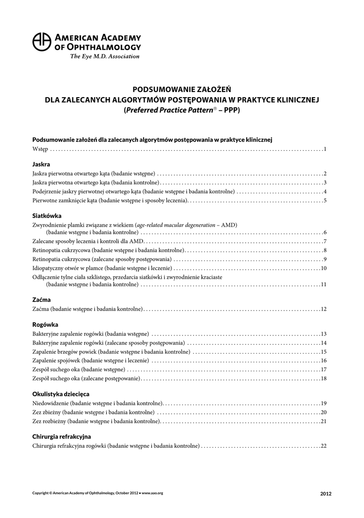 Zalecenia Amerykańskiej Akademii Okulistyki 2013 - PDF