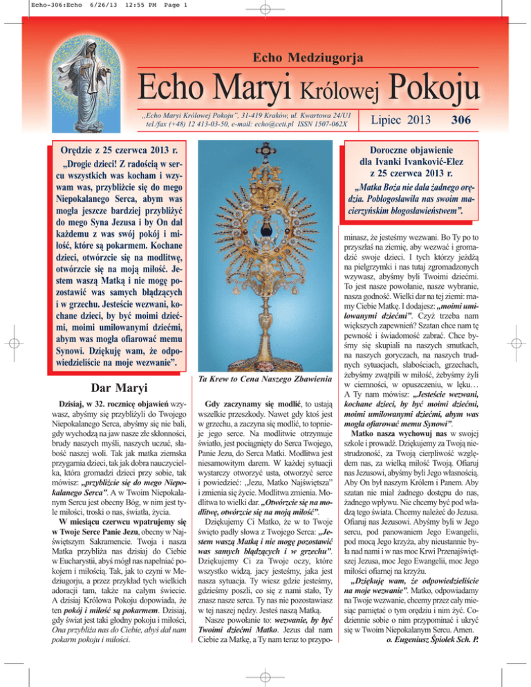 2013 lipiec - Echo Maryi Królowej Pokoju