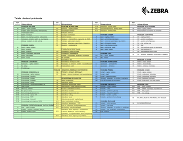 Tabela z kodami problemów