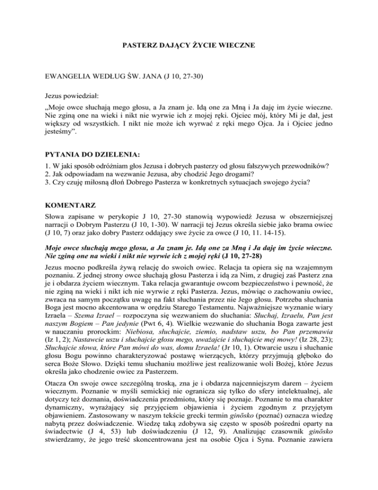 PASTERZ DAJĄCY ŻYCIE WIECZNE EWANGELIA WEDŁUG ŚW