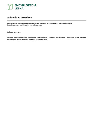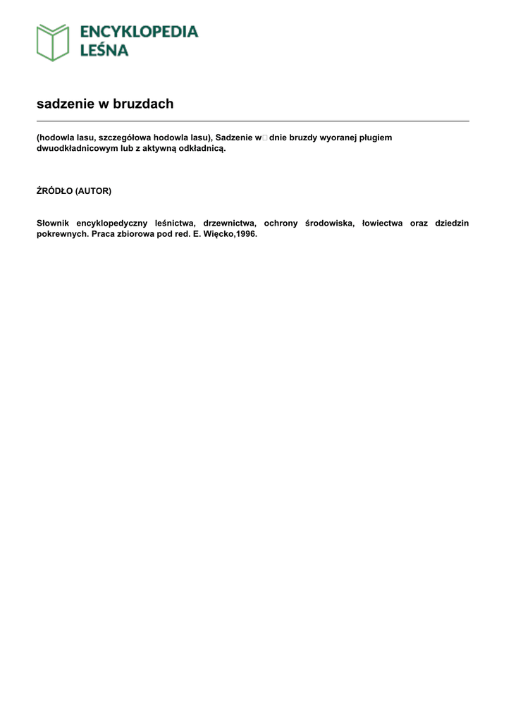 sadzenie w bruzdach (hodowla lasu, szczegółowa hodowla lasu), Sadzenie w dnie bruzdy wyoranej pługiem dwuodkładnicowym lub z aktywną odkładnicą. ŹRÓDŁO (AUTOR) Słownik encyklopedyczny leśnictwa, drzewnictwa, ochrony środowiska, łowiectwa oraz dziedzin pokrewnych. Praca zbiorowa pod red. E. Więcko,1996.