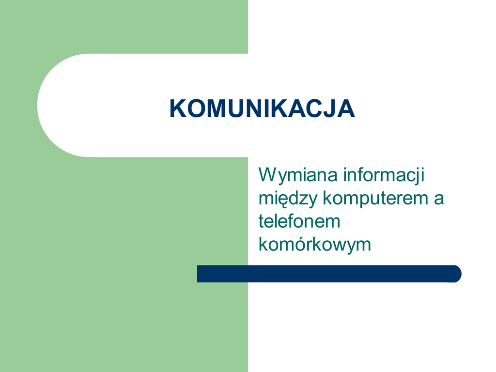 KOMUNIKACJA Wymiana informacji między komputerem a telefonem komórkowym Dlaczego „telefon komórkowy”? Nazwa obrazuje filozofię działania. Telefony komórkowe nie komunikują się ze sobą bezpośrednio, ale poprzez sieć operatora telekomunikacyjnego. Aby było to możliwe, operator rozmieszcza w regularnych odległościach stacje nadawczo-odbiorcze (BTS) pokrywające swoim zasięgiem pewien obszar. Obszary te oznacza się tradycyjnie sześciokątami. Na mapie przypominają one „komórki” plastra miodu. Schemat sieci komórkowej Legenda BTS Zasięg BTS-u (komórka) Telefony komórkowe - działanie Każdy telefon komórkowy wyposażony jest w przetwornik analogowo-cyfrowy przekształcający dźwięk na strumień bajtów. Strumień ten jest następnie szyfrowany i wysyłany do najbliższego BTSu drogą radiową. BTS deszyfruje strumień i wysyła go (kablem lub światłowodem) do MSC, który jest po prostu centralą telefoniczną. Dalej strumień wędruje jak każda rozmowa telefoniczna. Telefony komórkowe - działanie Tym co odróżnia telefon komórkowy od telefonu stacjonarnego (np. ISDN) jest fakt, że telefon nie jest przypisany do żadnej centrali na stałe. Zmiana BTSu czy nawet MSC, który obsługuje daną słuchawkę zachodzi automatycznie i jest niewidoczna dla abonenta nawet jeśli prowadzi on właśnie rozmowę. Usługi Większość usług komórkowych ma swoje korzenie w telefonii cyfrowej (ISDN), Internecie lub palmtopach. Niewiele z nich wykorzystuje cechę „mobilności” terminala. SMS SMS to wiadomość długości 160 bajtów przesyłana pomiędzy terminalami. Może zawierać tekst, obrazek lub dzwonek. Wywodzi się bezpośrednio z sieci ISDN. Pewną modyfikacją jest tu zastosowanie bramek internetowych. Dzięki nim telefon zyskuje funkcjonalność Internetowego klienta poczty elektronicznej. WAP/WML WAP i WML są komórkowymi odpowiednikami protokołów HTTP i HTML znanych z Internetu. Umożliwiają one tworzenie serwisów podobnych do WWW. Ich największą wadą jest fakt, że WAP jest protokołem synchronicznym (wymaga nawiązania połączenia a płaci się za minutę połączenia a nie za kB danych). Obecnie nie jest stosowana. MMS MMS to usługa ideowo podobna nieco do SMS – umożliwia przesyłanie wiadomości pomiędzy terminalami danych. Oparta jest na protokole WAP. Obecnie używa się jej do transmisji zdjęć, ale bez trudu można zbudować np. walkmana odbierającego za pomocą MMS-ów pliki MP3. GPRS GPRS to technologia generacji „2 i pół” (GSM jest generacją drugą a UMTS generacją trzecią). Jest to rozszerzenie telefonu komórkowego o transmisję pakietową. Umożliwia w miarę szybki (115kb/s) i tani (płaci się za kB danych a nie za sekundę połączenia) bezprzewodowy dostęp do Internetu. Źródła „Technologia informacyjna nie tylko dla uczniów” – E. Krawczyński, Z. Talaga, M. Wilk
