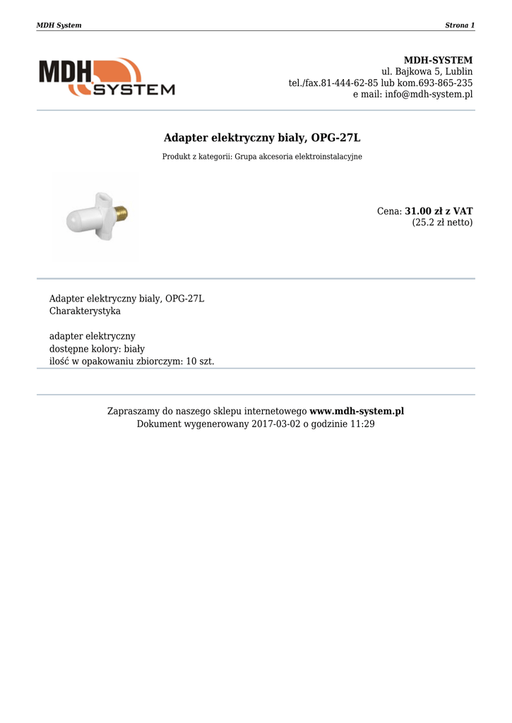 Adapter elektryczny bialy, OPG-27L - Mdh