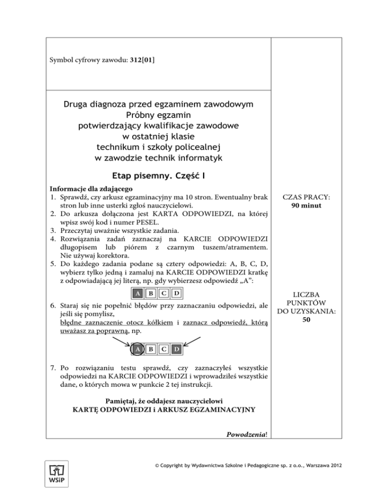 Druga diagnoza przed egzaminem zawodowym ● Technik informatyk ● Część I