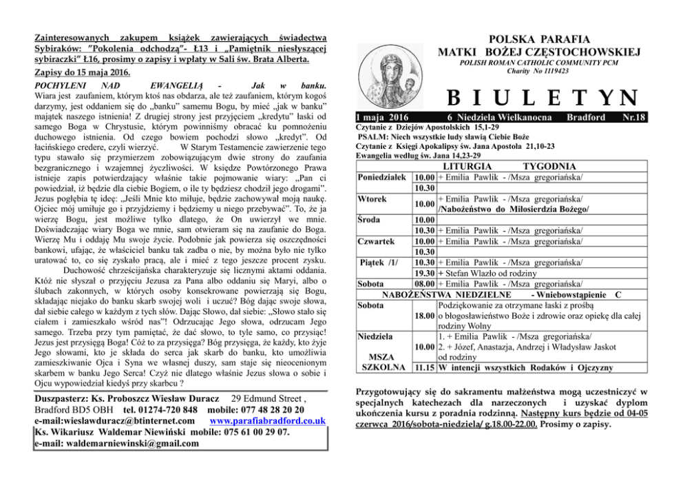 biuletyn - Polska Parafia Katolicka w Bradford