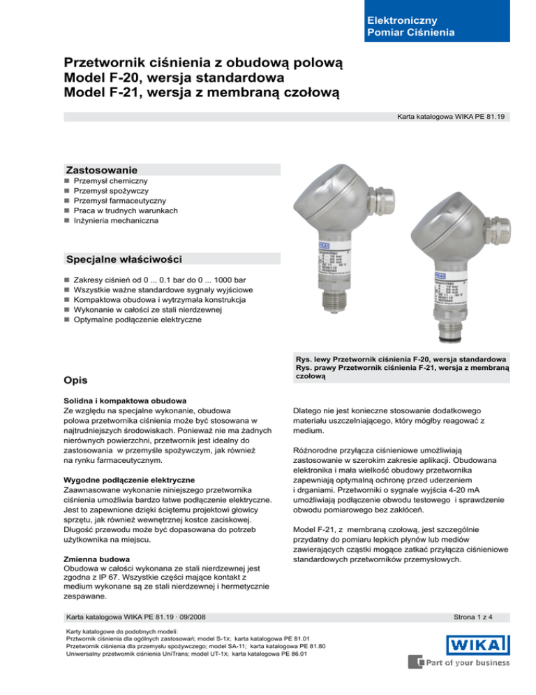 Dodatkowe informacje o kartach katalogowych, instrukcjach obsługi można uzsykać ze strony www.wikapolska.pl