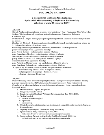 PROTOKÓŁ Nr 1 /2009 z posiedzenia Walnego Zgromadzenia