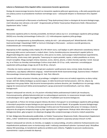 Lekarze w Światowym Dniu Zapaleń Jelita: nowoczesne leczenie