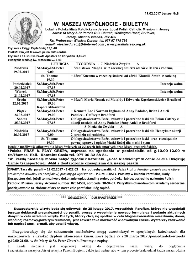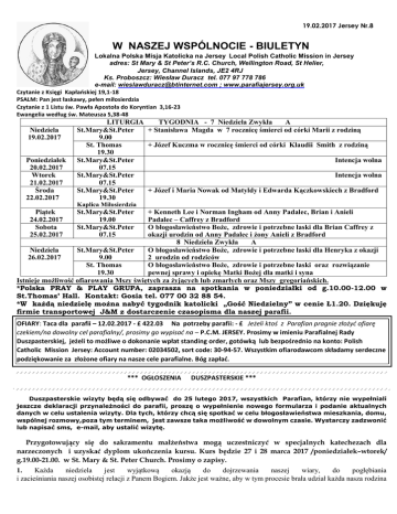 biuletyn - lokalna polska misja katolicka na jersey pod wezwaniem