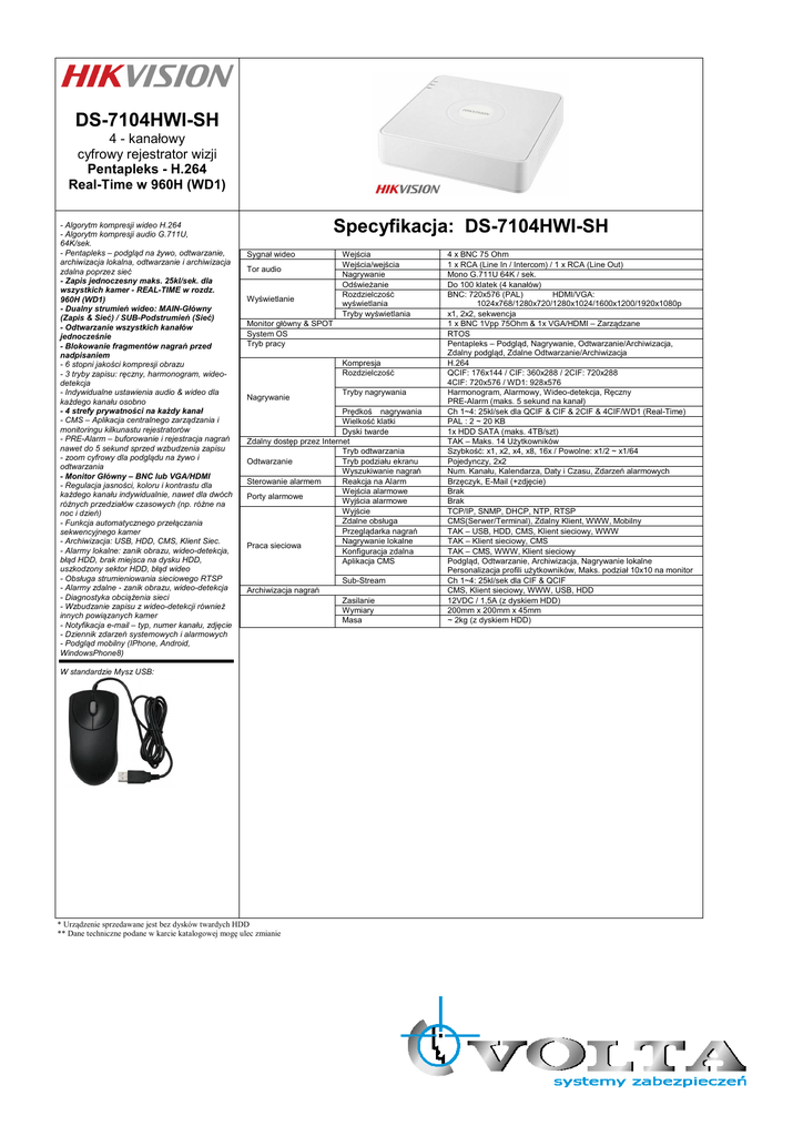 Karta Katalogowa DS-7104HWI-SH
