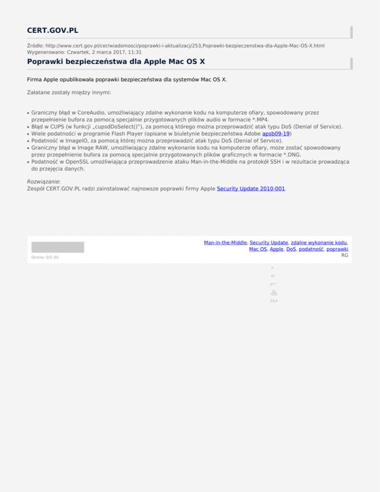 Poprawki bezpieczeństwa dla Apple Mac OS X