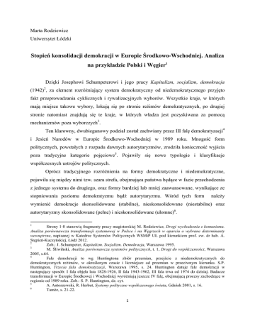 Rodziewicz M., Stopień konsolidacji demokracji w Europie