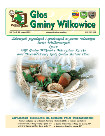 Rok VI nr 3 (62) marzec 2012 r. miesięcznik, pismo bezpłatne ISSN 1897-3566 Zdrowych, pogodnych i spêdzonych w gronie rodzinnym Œwi¹t Wielkanocnych ¿ycz¹ Wójt Gminy W ilkowice Mieczys³aw R¹czka Wilkowice oraz Przewodnicz¹cy Rady Gminy Bartosz Olma ZAPRASZAMY SERDECZNIE NA KONKURS PALM WIELKANOCNYCH Konkurs odbędzie się w Niedzielę Palmową 1 kwietnia 2012 r. w kościele parafialnym: w Wilkowicach po Mszy Świętej o godz. 1130 w Bystrej Śląskiej po Mszy Św. o godz. 1100 w Bystrej Krakowskiej po Mszy Św. o godz. 1100 w Mesznej po Mszy Św. o godz. 1030 KONKURS FOTOGRAFICZNY „BESKIDY – ORAWA, DWA DOMY – JEDNA SPRAWA” ROZSTRZYGNIÊTY! Projekt współfinansowany przez Unię Europejską z Europejskiego Funduszu Rozwoju Regionalnego w 85% w ramach Programu Współpracy Transgranicznej Rzeczpospolita Polska – Republika Słowacka 2007-2013 oraz z budżetu państwa w 10% za pośrednictwem Euroregionu Beskidy. Komisja konkursowa, powołana Zarządzeniem Wójta Gminy Wilkowice w składzie: Aleksandra Szymik-Caputa (koordynator projektu, KSP), Marek Kubica (GOSiR), Sławomir Filapek (KSP), Maciej Mrówka (KSP) dokonała oceny, wyboru i nagrodzenia złożonych zdjęć w ramach projektu „Beskidy – Orawa, dwa domy – jedna sprawa” organizowanym w ramach projektu pod nazwą „Beskidy-Orawa, dwa domy – jedna sprawa” – nr umowy PL-SK/BES/IPP/II/30, realizowanego ze środków Europejskiego Funduszu Rozwoju Regionalnego w ramach Programu Współpracy Transgranicznej Rzeczpospolita Polska – Republika Słowacka 20072013. Komisja wyraziła zgodę na udział w konkursie prac, które były w innym formacie, niż wymagane w regulaminie. W konkursie wzięły udział 57 osoby, w tym 15 osób ze Słowacji oraz 42 z Polski. Zgodnie z regulaminem oceniono wszystkie prace w trzech kategoriach wiekowych: dzieci przedszkolnych i szkół podstawowych, uczniów gimnazjum i dorosłych. W związku z tym, iż poziom prac był bardzo wyrównany, komisja uznała, iż w konkursie zostaną przyznane równorzędne nagrody za udział, natomiast dyplomem i nagrodą wyróżniono po jednej osobie z każdej kategorii wiekowej. Uczestnicy nagrodzeni za udział oraz wyróżnieni – Słowacy: Gimnazjum i dorośli: Milan Horńák (wyróżnienie), Stanislav Málik, Michaela Pavčova, Dominika Olíkova, Nikola Mokošova, Miloš Duraj, Lukáš Záhora, Mariana Beňušova. Dzieci przedszkolne i szkoły podstawowe: Mária Málikova (wyróżnienie), Michal Málik, Timea Labudova, Aneta Hrubjakova, Martin Hrubjak, Nórbert Dulík, Simona Beňušova. Uczestnicy nagrodzeni za udział oraz wyróżnieni – Polacy: Dzieci przedszkolne i szkoły podstawowe: Julia Krywult (wyróżnienie), Natalia Kania, Nikola Kania, Oliwia Świerczek, Patrycja Ferfecka, Paulina Siąkała, Sebastian Kanik, Wiktoria Siąkała, Zofia Dusińska, Emilia Czader, Jakub Kania, Kinga Wyszomirska, Łukasz Kruczek. Młodzież gimnazjalna: Radosław Bakalarski (wyróżnienie), Agnieszka Jakubiec, Aleksandra Tlałka, Bartłomiej Marek, Joanna Gilowska, Joanna Nowicka, Kacper Damek, Karolina Męcner, Katarzyna Herzyk, Kinga Rosiak, Adrian Czaniecki, Klaudia Śpiewak, Malwina Borkowska, Marcelina Grylowska, Marta Czuba, Monika Jakubiec, Monika Tomal, Sabina Damek, Adrianna Trefoń, Agnieszka Cendrzak, Mateusz Damek. Dorośli: Andrzej Błachut (wyróżnienie), Grzegorz Pankiewicz, Michał Soberka, Zbigniew Banet, Małgorzata Damek, Marcin Matlak, Katarzyna Kania, Paweł Kania. Wszystkim nagrodzonym gratulujemy, a prace konkursowe znajdą się w folderze pt. „Beskidy-Orawa, dwa domy – jedna sprawa”. Aleksandra Szymik-Caputa PIÊKNIEJMY Podejmując decyzję o budowie tras narciarskich na Magurce Wilkowickiej, wiedzieliśmy jako samorządowcy, że podejmujemy się zadania niezwykle czasochłonnego i trudnego, ze względu na położenie w Parku Krajobrazowym Beskidu Małego oraz częściowo na obszarze Natura 2000. Wiedzieliśmy również, że trasa biegowa w tym miejscu będzie spełniała wymagania homologacyjne oraz, że położona jest niezwykle malowniczo, na odpowiedniej wysokości. Wiadomym było również, że na polanie przed schroniskiem winien powstać budynek, zaplecza socjalno-sędziowskiego, do obsługi powstających tras. Początkowo w zamyśle inwestorów miał to być zwykły budynek, jakich wiele przy różnego rodzaju obiektach sportowych. Rozpoczęta współpraca z biurem architektonicznym PLUS8.pl z Zabrza zaowocowała projektem bardzo nowoczesnym, jednak, doskonale wpisującym się w krajobraz Magurki, projektem bardzo proekologicznym. Wystarczy wspomnieć, że do ogrzewania obiektu zastosowano pompę ciepła, na dachu budynku będzie zaś rosła trawa specjalnie wyselekcjonowana, identyczna gatunkowo jak ta, która dotychczas rosła na polanie. Warto zwrócić uwagę również na fakt, że dach ten jest jednocześnie wyjątkowo ciekawym punktem widokowym odsłaniającym panoramę od Beskidu Śląskiego po Beskid Mały (przez Małą Fatrę, Beskid Żywiecki), w dogodnych warunkach, uważny obserwator, dojrzy nawet Babią Górę. To wszystko spowodowało, że projekt ten, współfinansowany ze środków Unii Europejskiej realizowany wspólnie z naszymi przyjaciółmi samorządowcami z Czernichowa, został dostrzeżony przez Ministerstwo Rozwoju Regionalnego i zgłoszony do ogólnopolskiego konkursu PIĘKNIEJMY. W tym roku wśród nominowanych w V edycji tego konkursu znalazły się tylko dwa projekty z województwa śląskiego. O laury walczą projekty, nasz: „Budowa tras do narciarstwa biegowego w partiach szczytowych Magurki Wilkowickiej” w kategorii Turystyka aktywna oraz projekt „KOTEK - komputerowe okno tarnogórskiej edukacji kulturalnej” realizowany przez Gminę Tarnowskie Góry. 2 KOMUNIKAT Wójta Gminy w Wilkowicach w sprawie darmowego podpisu elektronicznego Celem tego konkursu jest wyłonienie i nagrodzenie najlepszych przedsięwzięć współfinansowanych z funduszy europejskich. W tym roku do Biu