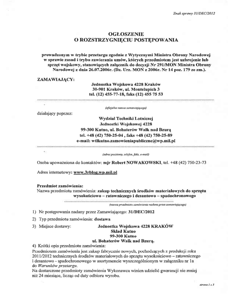 do kontakt6w:mjr Robert NOWAKOWSKI, tel.+48 (42)'750-23-73
