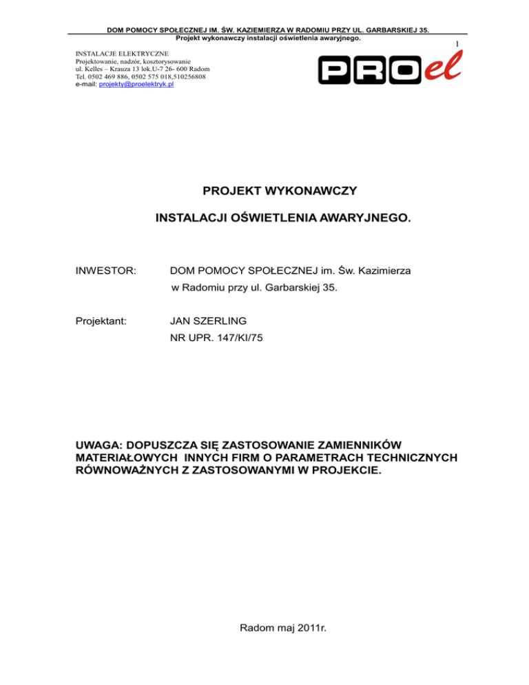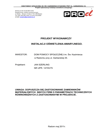 projekt wykonawczy instalacji oświetlenia awaryjnego.