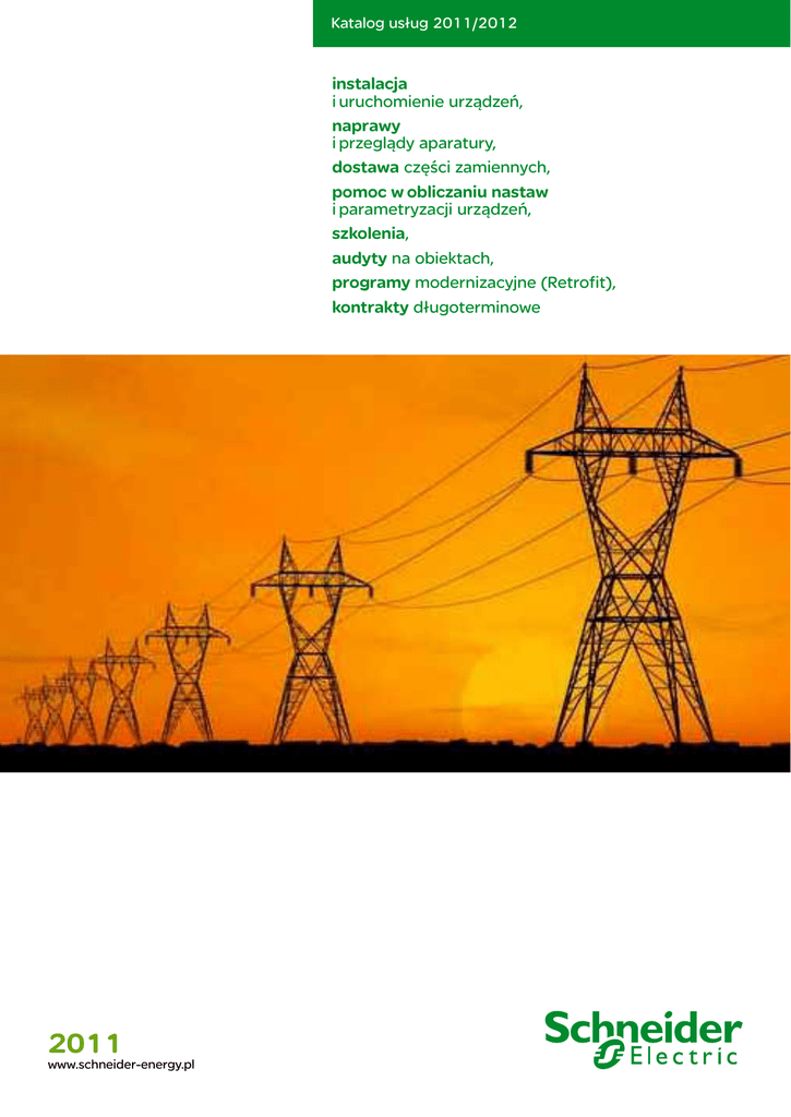 Katalog usług 2011/2012 instalacja i uruchomienie urządzeń, naprawy i przeglądy aparatury, dostawa części zamiennych, pomoc w obliczaniu nastaw i parametryzacji urządzeń, szkolenia, audyty na obiektach, programy modernizacyjne (Retrofit), kontrakty długoterminowe 2011 www.schneider-energy.pl [ Katalog usług 2011/2012 ] Schneider Electric Energy Poland Sp. z o.o. Zakład Automatyki i Systemów Elektroenergetycznych REFA w Świebodzicach jest obecny w energetyce od ponad 65 lat, a nasze produkty i rozwiązania dla automatyki, znalazły uznanie wśród klientów na całym świecie. • Przekaźniki • Zabezpieczenia MiCOM • Zestawy szafowe • System PACiS • Usługi inżynieryjne i szkoleniowe Na przestrzeni lat, w wyniku przekształceń i zmian w strukturze akcjonariatu Spółki, REFA wielokrotnie zmieniała swoją nazwę. Ostatnia zmiana własnościowa sfinalizowana została w grudniu 2010 r., kiedy to 100% udziałów w Spółce – działającej pod nazwą AREVA T&D Sp. z o.o. – została przejęta przez grupę Schneider Electric. Od tego momentu świebodzicka REFA działa pod nazwą Schneider Electric Energy Poland Sp. z o.o. . Schneider Electric Energy Poland Sp. z o.o. współtworzą Zakład Automatyki i Systemów Elektroenergetycznych REFA w Świebodzicach oraz Mikołowska Fabryka Transformatorów MEFTA w Mikołowie Wyróżnikiem Zakładu Automatyki i Systemów Elektroenergetycznych REFA jest bardzo wysoki poziom wiedzy i umiejętności z dziedziny automatyki zabezpieczeniowej reprezentowany przez naszych pracowników. Działając jako jedno z 8 Regionalnych Centrów Rozwiązań Automatyki (RSAC) Schneider Electric Energy na świecie odpowiadamy za udzielanie wsparcia technicznego dla naszych klientów w Regionie Eurazja. Dzięki tej wiedzy i kompetencjom możemy zaoferować Państwu szeroki wachlarz usług inżynierskich i szkoleniowych prezentowany w niniejszym katalogu. 2 [ Katalog usług 2011/2012 ] Schneider Electric Energy Poland Sp. z o.o. REFA jako jednostka Schneider Electric jest globalnym partnerem w dziedzinie rozwiązań dla Automatyki Zabezpieczeniowej dysponuje zakresem usług uzupełniających szeroką ofertę aparatury zabezpieczeniowej dla energetyki i przemysłu. Niniejsza publikacja zawiera szczegółowy opis oferowanych na polskim rynku usług SE (sektor Automation), które pomogą naszym Klientom w dostosowaniu naszych urządzeń do ich indywidualnych potrzeb. OFERTA OBEJMUJE: • • • • • • • • instalację i uruchomienie urządzeń, naprawy i przeglądy aparatury, dostawę części zamiennych, pomoc w obliczaniu nastaw i parametryzacji urządzeń, szkolenia, audyty na obiektach, programy modernizacyjne (Retrofit), kontrakty długoterminowe 3 [ Katalog usług 2011/2012 ] Schneider Electric Energy Poland Sp. z o.o. Instalacja i uruchomienie urządzeń obejmuje 1. Uruchomienia przekaźników rodziny MiCOM na obiekcie (częściowe i kompleksowe) • uruchomienia częściowe obejmują: • współudział pracowników SE przy załączaniu urządzeń do ruchu • rozwiązywanie na bieżąco problemów związanych z konfiguracją układu pracy urządzeń • rekonfiguracja urządzeń wynikła z błędów projektowych i konieczności wprowadzenia niezbędnych poprawek do programu • uruchomienia kompleksowe obejmują dodatkowo: • prace związane ze wstępną konfiguracją urządzeń w zakładzie SE w Świebodzicach zgodnie z przekazaną dokumentacją • przeprowadzenie testów prądowo-napięciowych obwodów analogowych • przeprowadzenie testów aktywowanych funkcji zabezpieczeniowych, sterowniczo-pomiarowych i diagnostycznych • szkolenia personelu z obsługi urządzeń • sporządzenie raportów z wykonanych prac w formie elektronicznej lub papierowej 2. Tworzenie typowych i nietypowych automatyk stacyjnych 3. Przeprowadzenie testów ruchowych • dotyczą obwodów wtórnych (wejścia pomiarowe zmiennoprądowe i napięciowe) • potwierdzenie poprawności kalibracji obwodów pomiarowych • próby funkcjonalne wykorzystywanych w układzie zabezpieczeń • testy wejść binarnych i wyjść przekaźnikowych • sporządzenie raportów z wykonanych prac w formie elektronicznej lub papierowej • wszelkie testy oraz uruchomienia przeprowadzane są z pomocą Testerów typu OMICRON 4 [ Katalog usług 2011/2012 ] Schneider Electric Energy Poland Sp. z o.o. Naprawy i przeglądy aparatury • Pogwarancyjne testy funkcjonalne • Autoryzowane naprawy lub częściowa albo całkowita regeneracja urządzeń lub systemów Dostawa części zamiennych • Zapewniamy kompletny asortyment części zamiennych do wszystkich Naszych urządzeń produkowanych zarówno w Polsce jak i poza granicami Polski. • Realizujemy zamówienia na części zamienne w przypadku konieczności rozszerzenia pracującego urządzenia o dodatkowe moduły. Parametryzacja urządzeń obejmuje: • Konfigurację przekaźników rodziny MiCOM (praca w oparciu o nadesłane projekty jak i modyfikacje projektów) • Doraźną pomoc techniczną w zakresie eksploatacji urządzeń • Dobór aparatury zabezpieczeniowej dla danej aplikacji • Rozpoznanie możliwości oraz zastosowanie odpowiednich rozwiązań w celu poprawy wydajności systemów i urządzeń, dopasowania algorytmów sterowania do procesów technologicznych • Konsultacje telefoniczne w zakresie konfiguracji, eksploatacji i serwisu aparatury zabezpieczeniowej • Centrum informacji technicznej o oferowanych wyrobach • Tworzenie dokumentacji pomocniczej • Bogata i wszechstronna wiedza na temat stosowanych w projektach przekaźników i ich funkcjonalności • Praktyczna znajomość zagadnień EAZ • Znajomość struktury rozdzielni SN i WN, stosowanych tam funkcji zabezpieczeniowych i automatyk Zakłócenia jakości energii są powodowane przez wzajemne oddziaływanie systemu elektroenergetycznego i odbiorników energii. Najczęściej przyczyna leży po stronie odbiorników energii, chociaż możliwe jest także