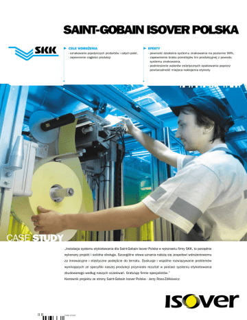 SAINT-GOBAIN ISOVER POLSKA CELE WDRO¯ENIA EFEKTY - oznakowanie pojedynczych produktów i ca³ych palet, - zapewnienie ci¹g³oci produkcji - pewnoæ dzia³ania systemu znakowania na poziomie 99%, - zapewnienie braku przestojów lini produkcyjnej z powodu systemu znakowania, - podniesienie walorów estetycznych opakowania poprzez powtarzalnoæ miejsca naklejenia etykiety CASE STUDY Instalacja systemu etykietowania dla Saint-Gobain Isover Polska w wykonaniu firmy SKK, to porz¹dnie wykonany projekt i solidna obs³uga. Szczególne s³owa uznania nale¿¹ siê zespo³owi wdro¿eniowemu za innowacyjne i elastyczne podejcie do tematu. Dyskusje i wspólne rozwi¹zywanie problemów wynikaj¹cych ze specyfiki naszej produkcji przynios³o rezultat w postaci systemu etykietowania zbudowanego wed³ug naszych oczekiwañ. Gratulujê firmie specjalistów. Kierownik projektu ze strony Saint-Gobain Isover Polska - Jerzy Ross-¯ó³kiewicz || || CASE STUDY Na pocz¹tku roku 2006 firma Saint-Gobain Isover Polska zwróci³a siê do SKK z zapytaniem ofertowym na system znakowania etykietami. W drodze konkursu firma SKK zosta³a wybrana na dostawcê systemu znakowania produktów jednostkowych i palet. Firma Saint-Gobain Isover Polska wybra³a SKK na dostawcê stanowisk znakowania z kilku powodów: · SKK zaproponowa³o rozwi¹zanie dopasowane do potrzeb klienta · SKK zapewni³o wysoki standard serwisu · Zaproponowane rozwi¹zanie zosta³o oparte o niezawodne i proste w obs³udze urz¹dzenia firmy Mectec. · Oferta SKK by³a atrakcyjna cenowo W fabryce Saint-Gobain Isover Polska Sp. z o.o. w Gliwicach zosta³y zainstalowane dwa stanowiska znakowania. Na pierwszym stanowisku znakowane s¹ rolki i paczki we³ny mineralnej. Wysokie standardy produkcyjne firmy Saint-Gobain Isover Polska nie pozwalaj¹ na to, aby fabrykê opuci³ nieoznakowany WWW.SKK.COM.PL || || CASE STUDY produkt. Dlatego wymagana jest wyj¹tkowa pewnoæ dzia³ania stanowiska znakowania. Zaproponowane rozwi¹zanie oparte o urz¹dzenia firmy Mectec nadaje siê do takich aplikacji doskonale. Specjalnie zaprojektowane automatyczne aplikatory do pracy w ciê¿kich warunkach przemys³owych przez 24 godziny na dobê 7 dni w tygodniu sprosta³y wysokim wymaganiom stawianym przez firmê Saint-Gobain Isover Polska. Dodatkowo niezawodnoæ stanowiska znakowania zosta³a podwy¿szona poprzez zainstalowanie uk³adu 2 urz¹dzeñ pracuj¹cych w uk³adzie Master-Slave. Dziêki temu ci¹g³oæ znakowania jest utrzymana nawet podczas niezbêdnych przestojów urz¹dzeñ na uzupe³nienie materia³ów eksploatacyjnych (etykiety i tama barwi¹ca). W przypadku wy³¹czenia lub awarii jednej z maszyn, druga automatycznie przejmuje jej zadanie. Na drugim stanowisku znakowane s¹ palety. Stanowisko znakowania jest umieszczone na koñcu linii produkcyjnej. Aplikator drukuje i nanosi 2 etykiety na palety. Etykiety te s¹ póniej wykorzystywane w gospodarce magazynowej. E-MAIL: SKK @ SKK.COM.PL Podjête przez SKK zadanie nie by³o ³atwe. Wysokie wymagania klienta, du¿a wydajnoæ linii i skomplikowany sposób naklejania etykiet na rolki we³ny mineralnej by³y wyzwaniem rzuconym zarówno producentowi urz¹dzeñ firmie Mectec, jak i zespo³owi projektowo-wdro¿eniowemu sk³adaj¹cemu siê z pracowników firm SKK i Saint-Gobain Isover Polska. Tylko dziêki cis³ej wspó³pracy obu zespo³ów uda³o siê osi¹gn¹æ wyznaczony cel. Projektantom stanowisk znakowania przywieca³o zadanie dostarczenia stanowisk ³atwych w obs³udze zarówno dla operatorów, jak i obs³ugi utrzymania ruchu. Ergonomia stanowisk jest udanym kompromisem pomiêdzy ³atwoci¹ a szybkoci¹ obs³ugi. Kierownik Projektu SKK Robert Goncerz: Du¿e zaanga¿owanie pracowników Saint-Gobain Isover Polska w projekt sprawi³o, ¿e wdro¿enia przebieg³o w mi³ej atmosferze. Wspó³praca z tak profesjonalnie podchodz¹cym do tematu klientem to czysta przyjemnoæ CENTRALA BIURO BIURO BIURO 30-415 Kraków ul. Wadowicka 8A tel. 012 2932 700 fax 012 2932 701 03-738 Warszawa, ul. Kijowska 1 tel. 022 5180 700 fax 022 5180 701 61-612 Poznañ ul. Rubie¿ 46 tel. 061 657 18 90 fax 061 657 18 91 80-451 Gdañsk ul. Kociuszki 5 tel. 058 524 05 14 tel./ fax. 058 524 05 13