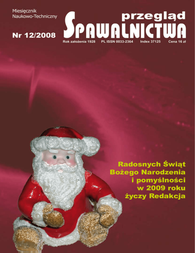 Radosnych Świąt Bożego Narodzenia i pomyślności w 2009 roku życzy Redakcja Przegląd spawalnictwa 12/2008 Komfort Przyłbica spawalnicza 3M™ Speedglas™ 9100 to rozwiązanie nowej generacji, zapewniające niespotykany dotąd komfort użytkowania. i niezawodna ochrona 3M™ Speedglas™ 9100 posiada nowy, opatentowany system nagłowia, który idealnie dostosowuje się do kształtu głowy, jednocześnie ograniczając ucisk na najbardziej wrażliwe i czułe miejsca. Zwiększone o 30% pole widzenia automatycznego filtra spawalniczego Speedglas 9100XX w porównaniu do modelu Speedglas 9002X oraz jego unikalne funkcje, zapewniają doskonałą ochronę i wygodę podczas spawania. Speedglas™ 9100 to nowa jakość spawania. Przyłbica spawalnicza 3M™ Speedglas™ 9100XX zdobyła podczas Międzynarodowych Targów Poznańskich 2008 Złoty Medal – najbardziej prestiżową nagrodę przyznawaną podczas imprez targowych w Polsce. 3M Poland Sp. z o.o., Dział Bezpieczeństwa Pracy, al. Katowicka 117, Kajetany k/Warszawy 05-830 Nadarzyn, Tel.: 22 739 60 00, www.3m.pl Przegląd spawalnictwa 12/2008 Wydawca FORUM SPAWALNIKÓW POLSKICH Redakcja PRZEGLĄD SPAWALNICTWA Agenda Wydawnicza SIMP, ul. Świętokrzyska 14a, 00-050 Warszawa tel./fax: 0-22 827 25 42, 0-22 336 14 79 e-mail: [email protected], http://www.pspaw.ps.pl Adres do korespondencji: 00-950 Warszawa 1, skr. poczt. 56 Redaktor naczelny Miesięcznik Naukowo-techniczny agenda wydawnicza SIMP prof. dr hab. inż. Jerzy Nowacki – Politechnika Szczecińska Zastępca redaktora naczelnego ds. naukowych prof. dr hab. inż. Andrzej Klimpel – Politechnika Śląska Zastępca redaktora naczelnego ds. wydawniczych mgr inż. Irena Wiśniewska rok założenia 1928 dawniej Nr 12/2008 Przewodniczący Rady Programowej prof. dr hab. inż. Jan Pilarczyk – Instytut Spawalnictwa Rada Programowa dr hab. inż. Andrzej Ambroziak prof. PWr – Politechnika Wrocławska prezes Marek Bryś – Messer Eutectic Castolin Sp. z o.o. dr inż. Hubert Drzeniek – Euromat dyrektor Eugeniusz Idziak – KWB Bełchatów SA prof. dr hab. inż. Andrzej Kolasa – Politechnika Warszawska dr hab. inż. Jerzy Łabanowski prof. PG – Politechnika Gdańska prezes Mirosław Nowak – Technika Spawalnicza Poznań prezes Zbigniew Pawłowski – Lincoln Electric Bester dr inż. Jan Plewniak – Prezes ZG Sekcji Spawalniczej, Pol. Częstochowska dr inż. Anna Pocica – Politechnika Opolska prezes Lesław Polak – Esab Polska prezes Jacek Rutkowski – Kemppi Polska prof. dr hab. inż. Jacek Senkara – Politechnika Warszawska prezes Andrzej Siennicki – Cloos Polska prof. dr hab. inż. Andrzej Skorupa – Akademia Górniczo-Hutnicza Kraków prof. dr hab. inż. Edmund Tasak – Akademia Górniczo-Hutnicza Kraków mgr inż. Włodzimierz Jacek Walczak – Linde Gaz Polska prezes Marek Walczak – Urząd Dozoru Technicznego dyrektor Jan Wójcik – Polski Rejestr Statków Sekretarz redakcji Michał Dudziński Skład i druk Skład i łamanie: Redakcja Przeglądu Spawalnictwa AW SIMP Druk: Drukarnia Piotra Włodarskiego – Warszawa Stała współpraca LXXX Spis treści – Contents Redaktorzy działów dr h.c. prof. dr hab. inż. Leszek Dobrzański – Politechnika Śląska (Materiały) dr h.c. prof. dr hab. inż. Władysław Karol Włosiński – Polska Akademia Nauk (Zaawansowane technologie) dr hab. inż. Zbigniew Mirski prof. PWr – Politechnika Wrocławska (Lutowanie i klejenie) dr hab. inż. Jacek Słania – Instytut Spawalnictwa (Praktyka spawalnicza) dr inż. Kazimierz Ferenc – Politechnika Warszawska (Konstrukcje spawane) dr inż. Gracjan Wiśniewski – Urząd Dozoru Technicznego (Przepisy, normy, szkolenia). mgr inż. Michał Wińcza – Rywal-RHC (Technologie) PL ISSN 0033-2364 Jan Pilarczyk Konferencja Spawalnicza w Kijowie Jubileusz 90 lat Akademika Borysa Ewgieniewicza Patona................................2 Andrzej Klimpel, Jacek Górka, Artur Czupryński Tomasz Kik, Robert Dadak Badania technologii automatycznego lutowania miękkiego GTA elementów kolektora słonecznego Research into GTA automatic soft soldering technology of solar energy collector components............................................................................... 3 Paweł Biłous, Tadeusz Łagoda Działanie karbu strukturalnego w stalowych złączach spawanych Structural notch effect in steel welded joints.................................................... 9 Andrzej Kolasa Kalendarz Spawalniczy Polskiej IzbySpawalniczej...................................... 12 Krzysztof Luksa Zrobotyzowane spawanie GTA złączy zakładkowych i spoin grzbietowych blach ze stali S235JRG2 i X5CrNi18-10 Robotised GTA welding of overlapping welds and edge welds made of S235JRG2 and X5CrNi18-10 steels................................................... 13 Ruukki Innowacje w budownictwie wzmocnienią konstrukcję twojego CV ................... 17 CLOOS Polska Zrobotyzowane systemy spawalnicze .......................................................... 18 Andrzej Siennicki Europejskie wydarzenie w Sielpi .................................................................... 18 LimTECH Techniki ukosowania Ukosteel 2008................................................................ 19 Messer Eutectic Castolin Sp. z o.o. Materiały do napraw i regeneracji, sprzęt spawalniczy ................................ 20 Piotr Kohut Metody wizyjne w robotyce (cześć I) Vission Methods in Robotics (part I)................................................................ 21 Mariusz Chalecki, Wojciech Czaplejewicz, Aleksander Pawłuszewicz Spawanie stali hartowanych Quenched steel welding................................................................................. 26 Zbigniew Mirski Rozstrzygnięcie konkursu not we Wrocławiu „Za wybitne osiągnięcia w dziedzinie techniki”................................................ 30 Roczny spis treści 2008......................................................................