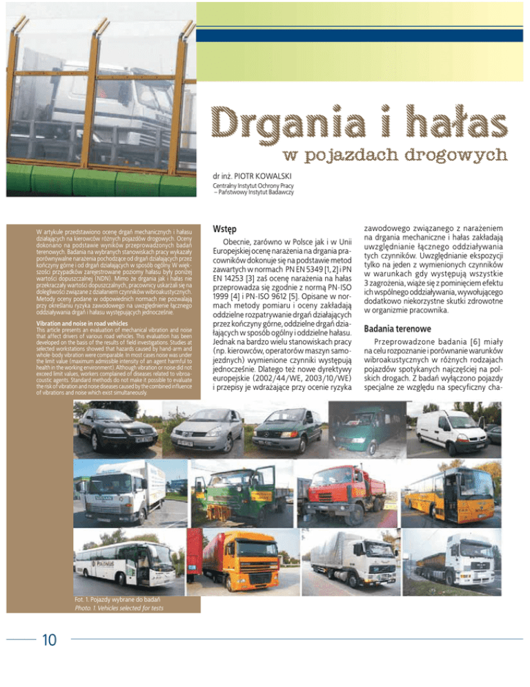 i ha³asu na kierowców środków transportu drogowego. II etap, CIOP-PIB Warszawa