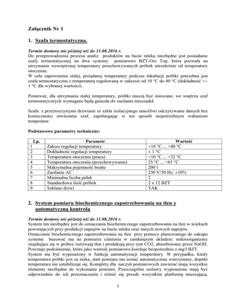 Załącznik Nr 1 1. Szafa termostatyczna. 2. System