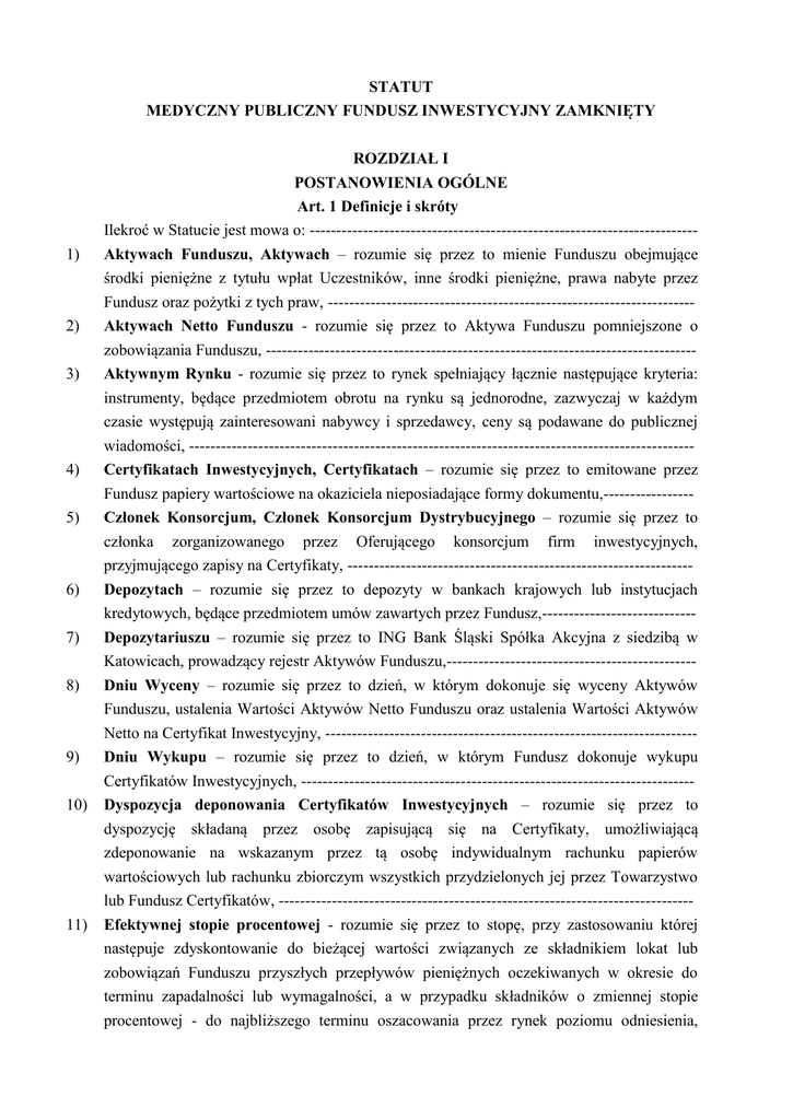 STATUT MEDYCZNY PUBLICZNY FUNDUSZ INWESTYCYJNY