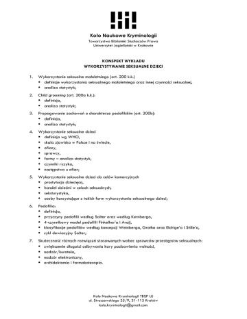 Wykorzystanie seksualne dzieci - Koło Naukowe Kryminologii TBSP