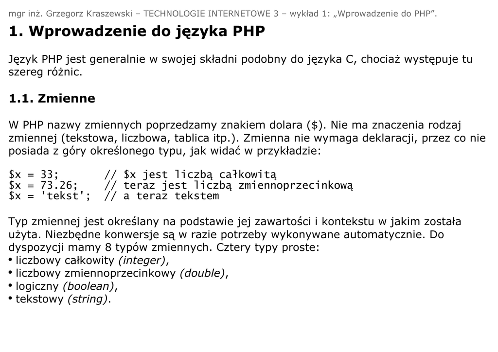 mgr inż. Grzegorz Kraszewski – TECHNOLOGIE INTERNETOWE 3 – wykład 1: „Wprowadzenie do PHP”.