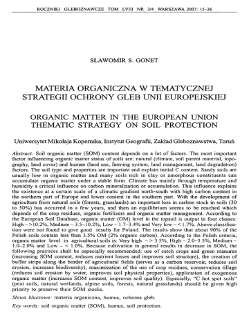 wanej Strategii Ochrony Gleb problemy materii organicznej znajdą należne jej miejsce.