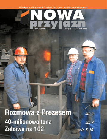 Miesięcznik Koksowni Przyjaźń Sp. z o.o. w Dąbrowie Górniczej ISSN 1507-658X Nr 5 (50) Rozmowa z Prezesem 40-milionowa tona Zabawa na 102 20 V - 20 VI 2005 r. str. 5 str. 7 str. 8-10 Nowa Przyjaźń - miesięcznik informacyjno-publicystyczny Koksowni Przyjaźń Sp. z o.o. w Dąbrowie Górniczej Wydawca: Koksownia Przyjaźń, 42-523 Dąbrowa Górnicza, ul. Koksownicza 1 Redaktor naczelny: Jerzy Pikuła; Konsultacja merytoryczna: Marek Szurma Tel. kontaktowy: 757 55 45 Redakcja i przygotowanie poligraficzne: Telpress ATP, 40-004 Katowice, al. Korfantego 2, tel. 203 54 36 Korespondencję do gazety prosimy składać w Kancelarii Ogólnej budynek dyrekcji, parter, pokój 021 Numer zamknięto: 25 maja 2005 r. Zdjęcia na okładkach: Emilia M. Posyłek, J. Pikuła N o w a numeracja telefoniczna Z dniem 1 czerwca 2005 r. nastąpiła zmiana numerów telefonów Koksowni Przyjaźń Sp. z o.o. w Dąbrowie Górniczej. Od czerwca br. można telefonować do Koksowni Przyjaźń z każdego telefonu bezpośrednio na dawne numery wewnętrzne. W tym celu należy wybrać pierwsze cztery cyfry nowego numeru centrali - 75 75, a następnie trzy cyfry numeru wewnętrznego. Wybrane obowiązujące od tej daty numery telefonów: Centrala telefoniczna: tel. (0-32) 757 50 00, 757 50 01 Sekretariat Prezesa Zarządu: tel. (0-32) 757 59 06 Sekretariat Wiceprezesa Zarządu: tel. (0-32) 757 59 05 Sekretariat Członka Zarządu, Dyrektora Handlu i Finansów: tel. (0-32) 757 59 09 Sekretariat Członka Zarządu, Dyrektora Produkcji i Techniki: tel. (0-32) 757 59 08 Sekretariat Dyrektora Handlowego, Prokurenta: tel. (0-32) 757 59 07 Sekretariat Dyrektora Pracy, Prokurenta: tel. (0-32) 757 59 11 Dyspozytor: tel. (0-32) 757 51 22 W numerze: Komentarz redakcyjny str. 3 Momentami było gorąco... str. 4 Wspólnie z załogą - rozmowa z Prezesem Norasem str. 5 Zakładowa konstytucja str. 6 „Wypchnięcie“ na 40 mln ton str. 7 Zabawa na 102 str. 8-10 „Mittal nie ma szans!“ str. 11 Spotkanie z Jubilatami II Karczma Piwna Koksowników str. 12 Przegląd prasy str. 13 Wędkarski piknik Szczęśliwcy odebrali nagrody str. 14-15 str. 16 KOMENTARZ REDAKCYJNY Uff, gorący maj... Dla większości załogi Koksowni Przyjaźń tegoroczny maj był naprawdę dobrym, udanym miesiącem. Podobnie jak cała branża hutnicza, koksownicy świętowali swojego patrona, czyli św. Floriana. Z tej okazji odbyło się wiele ciekawych zakładowych imprez i spotkań. Majowe szczęście sprzyjało kilkudziesięcioosobowej grupie pracowników, którzy zostali zwycięzcami konkursu organizowanego przez rozgłośnię FAMA. Podczas audycji, emitowanej na żywo, 4 maja br., przeprowadzono losowanie atrakcyjnych nagród. Co bardziej niecierpliwi zdołali je odebrać jeszcze tego samego dnia. Z uznaniem przedstawicieli Zarządu Spółki spotkali się również wieloletni pracownicy Koksowni, którzy w zawodzie spędzili ponad 40 lat życia. W dosyć luźnej atmosferze, przy winku i smacznym posiłku, szanowni Jubilaci wspominali dawne czasy. Potem odbyła się kolejna sympatyczna impreza - czyli II Karczma Piwna, którą zorganizowała w Olkuszu zakładowa Solidarność. Jako że tradycje Karczmy zobowiązują, zaszczyt picia zimnego piwka, jedzenia wybornej golonki i śpiewania „pieprznych“ piosenek przypadł wyłącznie mężczyznom. Być może niektóre feministki poczuły się tym nieco urażone, ale drogie panie, wciąż zdobywacie coraz więcej, wkraczacie z ogromnymi sukcesami w obszary zarezerwowane jeszcze nie tak dawno tylko dla panów, więc może raz do roku pozwolicie swym mężom i kolegom z pracy pobawić się wyłącznie w „męskim sosie“... Kolejnym niezwykle udanym wydarzeniem był piknik „Olimpiada na Wesoło 2005“, który w połowie maja zorganizował Dział Socjalny Koksowni. W „Olimpiadzie“ wzięło udział ponad 2 tys. osób, gdyż przez cały sobotni dzień bawiły się nie tylko rodziny pracowników Przyjaźni, ale i mieszkańcy Dąbrowy Górniczej. Każdy kto chciał i miał odrobinę odwagi, mógł sprawdzić się w rozlicznych konkurencjach. Jednak maj nie był li tylko dla pracowników Koksowni miesiącem zabaw i rozrywek, bowiem byliśmy świadkami kilku istotnych wydarzeń, które z pewnością będą miały zasadniczy wpływ na losy Spółki i całej załogi. Do jednych z najważniejszych z pewnością należy zaliczyć kilka sesji Nadzwyczajnego Zgromadzenia Wspólników. 9 maja z wiadomych powodów ważyły się losy Koksowni Przyjaźń. Plan (zatwierdzony zresztą w grudniu ub. roku przez rząd) powołania rodzimej grupy węglowo-koksowej stał pod znakiem zapytania. Chęć zakupu udziałów Koksowni należących do PKP zgłosił Mittal Steel Poland. Apetyty hinduskiego giganta zostały jednak zastopowane przez uchwały wspólników, co zresztą znalazło niesamowity oddźwięk we wszystkich krajowych mediach. Największe rodzime autorytety ekonomiczne z wielkim niepokojem odniosły się do próby monopolizacji produkcji stali, koksu oraz posiadania największych w Unii Europejskiej złóż doskonałej jakości węgla koksującego, które eksploatuje Jastrzębska Spółka Węglowa. Dopełnieniem walki o strategię rozwoju firmy były kolejne uchwały NZW, które jednogłośnie zatwierdziły Lucjana Norasa na Prezesa Zarządu Koksowni Przyjaźń. W zorganizowanym ogólnopolskim konkursie po kilkugodzinnych rozmowach kwalifikacyjnych dotychczasowy p.o. prezes otrzymał od siedmiu członków Rady Nadzorczej aż 198,55 pkt (na 210 maksymalnych do uzyskania). Akceptację na prezesa wyraził podczas NZW nawet przedstawiciel Mittala. I to chyba najlepiej świadczy o profesjonalizmie szefa Spółki. A jeśli do tego dodamy wyprodukowaną 10 maja br. na pierwszej baterii 40-milionową tonę koksu, to nic dziwnego, że Koksownia jest wciąż łakomym kąskiem dla obcego kapitału. 3 4 ZGROMADZENIA WSPÓLNIKÓW SPÓŁKI Tegoroczny maj był dla udziałowców Koksowni Przyjaźń niezwykle pracowitym miesiącem. A wszy