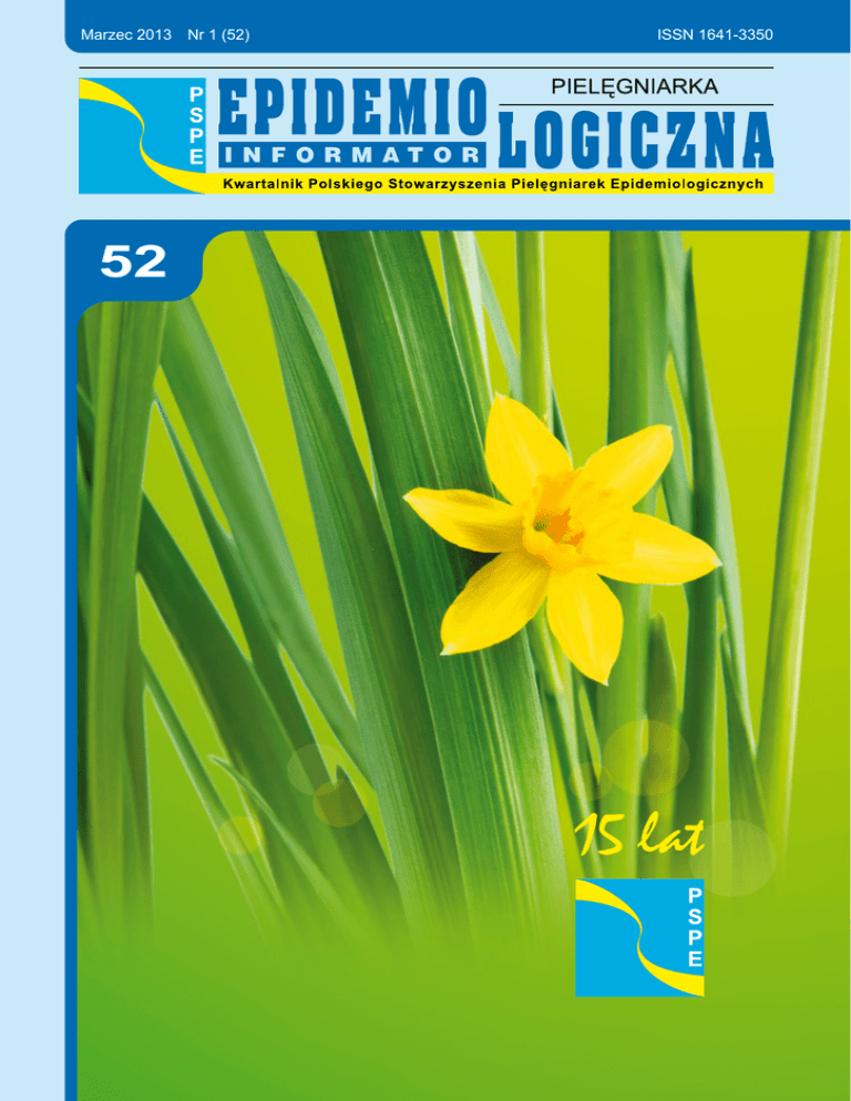 Marzec 2013 Nr 1 (52) ISSN 1641-3350 52 15 lat Pielęgniarka EPIDEMIOLOGICZNA 1 Konsultant Krajowy w dziedzinie pielęgniarstwa epidemiologicznego dr n. med. Beata Ochocka Szanowna Pani Doktor! Z okazji uzyskania stopnia doktora nauk medycznych składamy serdeczne gratulacje jednocześnie życząc dalszych sukcesów w realizacji zadań związanych z pracą zawodową oraz pomyślności w życiu osobistym. Zarząd Polskiego Stowarzyszenia Pielęgniarek Epidemiologicznych Zespół Redakcyjny Pani Barbara Anna Plewik Konsultant Wojewódzki w dziedzinie Pielęgniarstwa Epidemiologicznego dla województwa warmińsko-mazurskiego Szanowna Pani Konsultant Proszę przyjąć nasze gratulacje z okazji powołania Pani na stanowisko Konsultanta Wojewódzkiego w dziedzinie Pielęgniarstwa Epidemiologicznego dla województwa warmińsko-mazurskiego. Życzymy Pani wielu sukcesów w codziennej, niezwykle trudnej i odpowiedzialnej pracy zawodowej oraz satysfakcji z dalszego wzmacniania pozycji pielęgniarstwa epidemiologicznego. Proszę o przyjęcie serdecznych gratulacji. 2 Z wyrazami szacunku W imieniu Zarządu Konsultant Krajowy w dziedzinie pielęgniarstwa epidemiologicznego Prezes Polskiego Stowarzyszenia Pielęgniarek Epidemiologicznych Beata Ochocka Mirosława Malara Pielęgniarka EPIDEMIOLOGICZNA Szanowni Państwo Polskie Stowarzyszenie Rozwoju Sterylizacji i Dezynfekcji Medycznej pragnie zaoferować Państwu jedyny na polskim rynku podręcznik stanowiący „elementarz” sterylizacji. Szczegóły dot. zakupu znajdują się na stronie: www.sterylizacja.org.pl Marzec 2013 nr 1 (52) SPIS TREŚCI OD REDAKCJI . ..................................................................................... 4 Nadzór nad zakażeniami Sens podejmowania działań profilaktycznych przeciwko wirusom grypy..................... 6 Akredytacja................................................................................................................ 11 Sterylizacja niskotemperaturowa tlenkiem etylenu w pytaniach i odpowiedziach....... 12 Czy potrzebne są narodowe kampanie uświadamiające konieczność poprawnej higieny rąk?............................................................................................................... 16 Kampania promująca higienę rąk w Samodzielnym Publicznym Szpitalu Klinicznym Nr 4 w Lublinie w roku 2011.................................................................... 18 Poziom wiedzy personelu medycznego na temat związku prawidłowej higieny rąk z występowaniem zakażeń szpitalnych................................................................. 22 Uchwały Zarządu PSPE Informujemy, że Zarząd PSPE na posiedzeniu w dniu 16.12.2012 podjął: 1. Uchwałę o podniesieniu składki rocznej o 10,00 zł od dnia 01.01.2013 r. Uchwała nr U/IV/39/2012 – Składka roczna dla członków zwyczajnych i wspierających PSPE wynosi 60 zł. 2. Uchwałę o podniesieniu opłaty wpisowej do kwoty 50,00 zł od dnia 01.01.2013 r. Uchwała nr U/IV/40/2012 – Opłata wpisowa dla członków zwyczajnych i wspierających PSPE wynosi 50,00 zł. Ognisko epidemiczne o etiologii Klebsiella pneumoniae wytwarzające beta-laktamazy typu KPC (doświadczenia własne)..................................................... 28 Kształcenie podyplomowe pielęgniarek i położnych w dziedzinie pielęgniarstwa epidemiologicznego................................................................................................... 31 Bielizna operacyjna – ważny element profilaktyki zakażeń miejsca operowanego...... 36 Uprzejmie przypominamy wszystkim członkom Polskiego Stowarzyszenia Pielęgniarek Epidemiologicznych o obowiązku płacenia składek członkowskich. Zarząd PSPE Pielęgniarka EPIDEMIOLOGICZNA 3 OD REDAKCJI PRZEPIS NA UDANE ŚWIĘTA: 10 jajek, 4 farbki – maluj szlaczki i kokardki. 3 barany, 2 zajączki, białych bazi duże pączki. Metr kiełbasy, kilo szynki i słodyczy pełne skrzynki. 5 wiaderek pełnych wody – w poniedziałek dla ochłody! Najlepsze życzenia Wielkanocne wszystkim Czytelnikom składa Redakcja Wydawca: Polskie Stowarzyszenie Pielęgniarek Epidemiologicznych ul. Medyków 26 40-752 Katowice Redaktor Naczelny: mgr Dorota Czechowska e-mail: [email protected] kom. 667-676-422 Zespół redakcyjny: mgr Dorota Czechowska mgr Mirosława Malara dr Beata Ochocka spec. Rita Pawletko Rada Naukowa: dr n. med. Dorota Gregorowicz-Warpas dr n. med. Anna Szczypta dr n. med. Mariusz Czechowski dr n. przyr. Grzegorz Ziółkowski Adres Redakcji: ul. Medyków 26 40-752 Katowice Konto bankowe: BANK POLSKA KASA OPIEKI S.A. I Oddział w Katowicach ul. Chorzowska 1 40-121 Katowice 47 1240 1330 1111 0010 1495 6109 Zarząd PSPE: Prezes – mgr Mirosława Malara Z-ca Prezesa – mgr Małgorzata Sobania Członkowie Zarządu: spec. Rita Pawletko mgr Edyta Synowiec mgr Katarzyna Konrad Adres Zarządu PSPE: ul. Medyków 26 40-752 Katowice e-mail: [email protected] www.pspe.pl Nakład: 1000 egzemplarzy Dla członków PSPE bezpłatny. Zdjęcie na okładce: © artjazz – Fotolia.com ZAPRASZAMY DO WSPÓŁPRACY! Prześlij do nas swój tekst i podziel się swoimi doświadczeniami. Maszynopis w formie elektronicznej w formacie WORD (wersja 6 lub nowsza) można przesłać pocztą elektroniczną na adres: [email protected] lub [email protected] lub na innym nośniku elektronicznym (dyskietka, płyta CD) na adres redakcji: Redakcja Pielęgniarki Epidemiologicznej, ul. Medyków 26, 40-752 Katowice Objętość tekstu nie powinna przekraczać 10 stron standardowego maszynopisu. Prosimy o podanie najważniejszych informacji o autorze: nazwisko i imię, miejsce pracy, dokładny adres, numer telefonu i e-mail. W tekście należy stosować polską typografię, właściwą symbolikę, prawidłowy zapis liczb i jednostek. Wzory matematyczne zapisywać za pomocą narzędzi dostępnych w pakiecie biurowym. Pozycje piśmiennictwa należy umieszczać zgodnie z kolejnością ich cytowania w tekście, zapisywać je za pomocą n