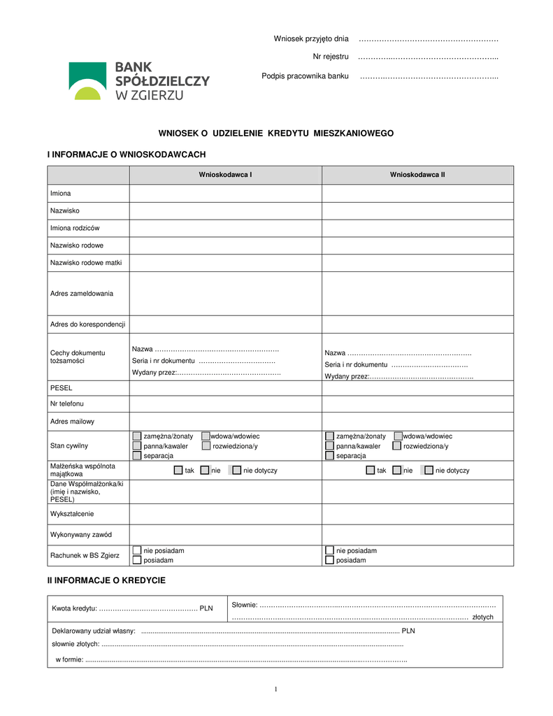 Wniosek o kredyt mieszkaniowy