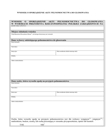 WYBORY PREZYDENTA RP – PEŁNOMOCNICTWO DO