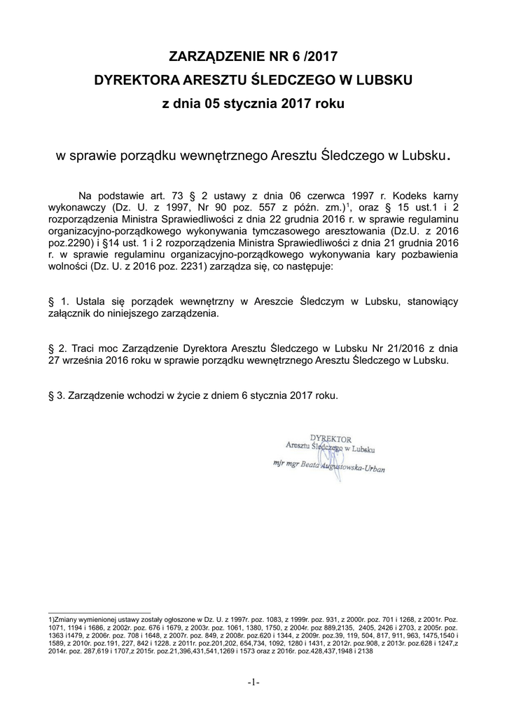 ZARZĄDZENIE NR 6 /2017 DYREKTORA ARESZTU ŚLEDCZEGO