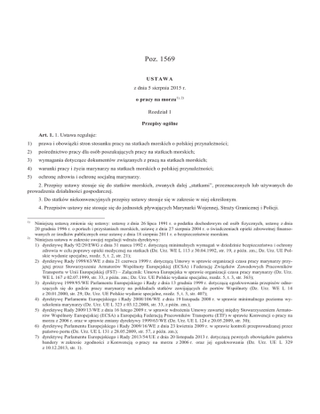 ustawie z dnia 5 sierpnia 2015 r. o pracy na morzu