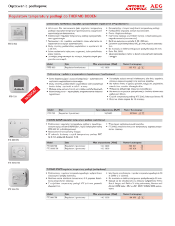 Karta katalogowa regulatorów temperatury do ogrzewania