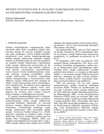 12) Trzpiot G., Ganczarek A. (2004), Risk on the Polish Energy Market, Dynamic Econometric Models, 6, 127-136.