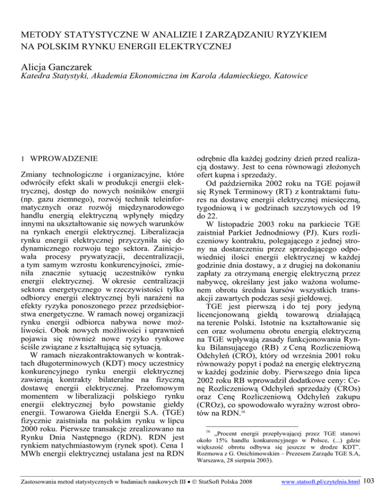 Metody statystyczne w analizie i zarządzaniu ryzykiem na polskim rynku energii elektrycznej
