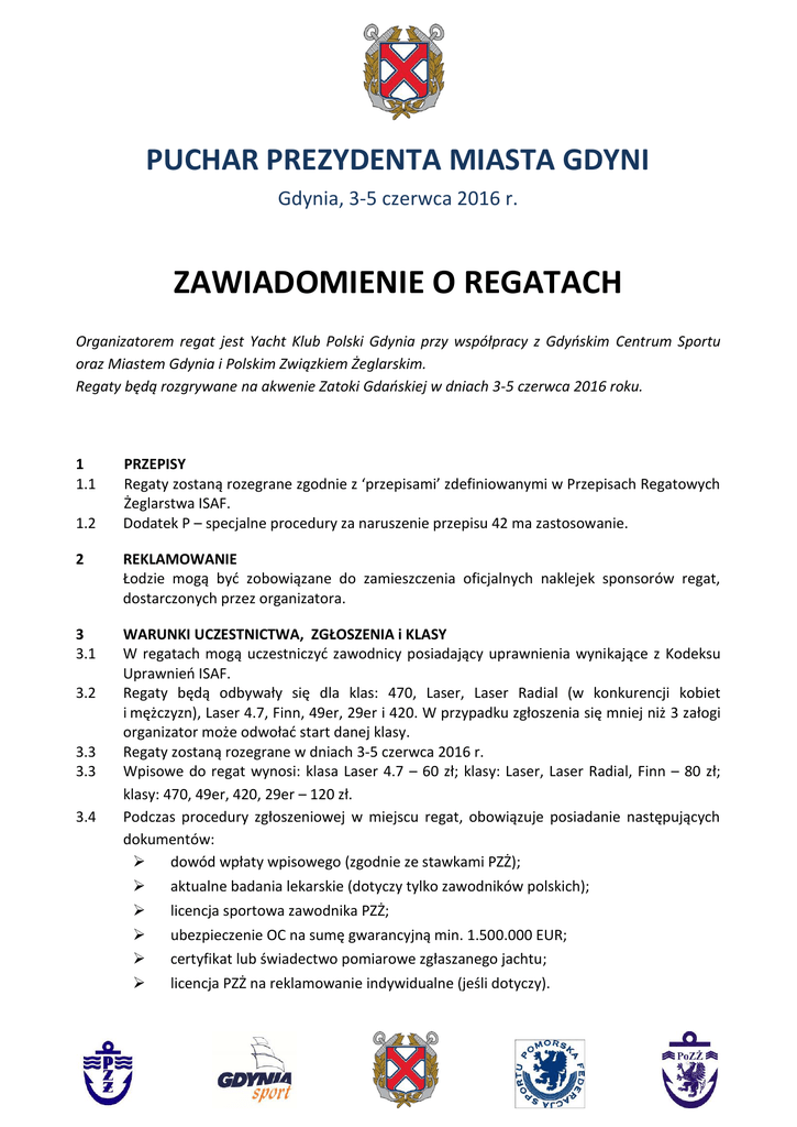 zawiadomienie o regatach - Yacht Klub Polski Gdynia