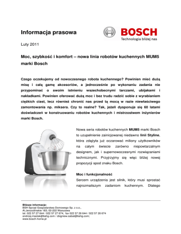 BOSCH INFORMACJA PRASOWA - nowa seria robotów MUM 5
