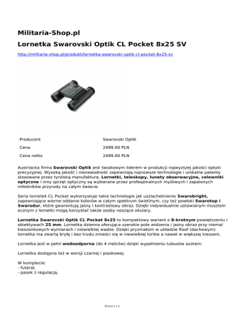 Militaria-Shop.pl Lornetka Swarovski Optik CL Pocket 8x25 SV