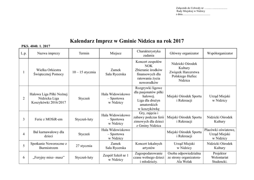 Kalendarz Imprez w Gminie Nidzica na rok 2017