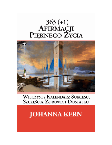 JOHANNA KERN – 365 (+1) AFIRMACJI PIĘKNEGO ŻYCIA: WIECZYCZYSTY KALENDARZ Sukcesu, Szczęścia, Zdrowia i Dostatku FRAGMENT KSIĄŻKI WPROWADZENIE: JAK KORZYSTAĆ Z TEJ KSIĄŻKI Sekrety Afirmacji: co wpływa na ich skuteczność? Poprzez stulecia znane i wpływowe osoby używały afirmacji, które przyniosły im nadzwyczajne wyniki. Krok po kroku, za pomocą skutecznych afirmacji, wielu zwykłych ludzi zmieniło porażki w sukcesy, choroby w zdrowie, nieszczęścia w radość życia. Istnieje jednak także wiele osób, którym powtarzane przez nie afirmacje nie przyniosły pożądanych skutków. W czym tkwił problem? Czego brakowało w używanych technikach afirmacji? Nasz wieczysty kalendarz afirmacji jest zaprojektowany w sposób umożliwiający wszystkim stopniowy postęp w usuwaniu podświadomych blokad poprzez wytwarzanie nowych ścieżek neuronowych w mózgu. Jest on skonstruowany w sposób, który pozostaje w harmonii z „Plastycznością Neruonalną” oraz za pomocą bardzo skutecznych technik afirmacyjnych umożliwia stałą, krok po kroku, przebudowę podświadomych przekonań. Wyobraź to sobie jako ścieżkę przez łąkę lub trawnik. Im częściej uczęszcza się taką ścieżką, czyli im częściej powtarza się pozytywną afirmację, tym szersza i przejrzystrza staje się „ścieżka” neuronowa oraz tym łatwiej Twoja podświadomość współpracuje z Tobą i Twoją wolą. Pamiętaj, że celem afirmacji jest przekazanie danej wiadomości do podświadomości i sprawienie, aby uwierzyła ona, że ta informacja jest prawdziwa. Oto niektóre z najważniejszych elementów skutecznych afirmacji: 1. Powtarzane stwierdzenie musi zgadzać się z tym, co jest w stanie zaakceptować nasza podświadomość. Jeśli afirmujemy coś, o czym wiemy, że jest nieprawdą dla nas w tej chwili - nasza podświadomość natychmiast to odrzuci. Gdy powtarzana afirmacja nie zgadza się z tym, co wiemy i myślimy o sobie w podświadomości, proces afirmacji może spalić na panewce, prędzej czy później powodując bolesne przeżycia, jak np. nieprzewidziane choroby (często takie, które mogą uniemożliwić spełnianie pragnień) lub problemy w rodzinie, pracy itp. 2. Wbrew utartym przekonaniom, wcale nie potrzeba powtarzać afirmacji tysiące razy, aby były skuteczne i wiarygodne dla podświadomości; wystarczy powtórzyć je kilkakrotnie, ale za to dostarczając sobie przy tym dowodu z „samego życia”. Oto prosty trik: powtórz afirmację w takiej chwili, która udowadnia Twej podświadomości, że to, co afirmujesz, jest prawdą. Na przykład, kiedy robisz afirmacje na przypływ pieniędzy, nie używaj takich stwierdzeń jak „pieniądze łatwo do mnie przychodzą” lub „mam milion złotych na koncie”, wtedy kiedy masz pustą kieszeń, a musisz zapłacić rachunki. Takie działanie wpływa na to, że pieniądze kojarzą się 2 JOHANNA KERN – 365 (+1) AFIRMACJI PIĘKNEGO ŻYCIA: WIECZYCZYSTY KALENDARZ Sukcesu, Szczęścia, Zdrowia i Dostatku FRAGMENT KSIĄŻKI Twej podświadomości z czymś bardzo przykrym. Natomiast na przykład, gdy idziesz na zakupy po coś upragnionego i wyjmujesz z kieszeni banknoty lub kartę kredytową - jest to doskonały moment na to, aby powiedzieć: „Mam więcej niż potrzeba na to, czego chcę”. 3. Ważne jest, aby to, co afirmujesz wyzwoliło Twoje uczucia. Nie każdy pamięta lub wie o tym, że podświadomość nie komunikuje się za pomocą słów, ale poprzez uczucia i emocje. Aby w pełni skorzystać z afirmacji, albo potrzeba zapoznać się ze swoimi emocjami i umiejętnie się nimi posługiwać, albo używać wyobraźni i wizualizacji w taki sposób, aby wyobrażać sobie w momencie powtarzania afirmacji, że to czego się pragnie, już się spełniło. Powtarzając afirmację staraj się wzbudzić w sobie uczucie przyjemności, radości i satysfakcji z osiągnięcia celu, albo – wyobraź sobie siebie, gdy już to się spełniło i wyobraź sobie, że odczuwasz takie właśnie emocje. 4. Powtarzane afirmacje, wbrew temu co nieraz słyszymy - nie muszą zawsze być w czasie teraźniejszym. Pamiętaj, że wszystko to, co afirmujesz musi być zaakceptowane jako prawda przez Twoją podświadomość. Jeśli np. zmagasz się z problemami zdrowotnymi, jednocześnie powtarzając sobie: „Jestem zdrowy/a”, może to spowodować opór w podświadomości, a ponadto negatywnie wpłynąć na Twoje zdrowie. Lepiej powtarzaj sobie: „Czuję się coraz lepiej i lepiej” w chwilach, gdy naprawdę czujesz jakąś ulgę. To istotnie może pomóc Ci przezwyciężyć problemy. Natomiast jeszcze skuteczniejsze jest powiedzenie: „Wybieram, aby czuć się lepiej i lepiej”, które może być użyte w każdej chwili. Powodem jest to, że jeśli używasz takiej formy, nie ograniczasz się w tym, na ile lepiej możesz się poczuć. Twoja podświadomość nie przestanie działać zakładając, że jesteś na tyle zdrowy/a ile trzeba i nadal będzie pracować nad tym, aby Twoje zdrowie zawsze się poprawiało. 5. Warto pamiętać, że ogromny wpływ na skuteczności afirmacji ma zapach. Dobrze jest powtarzać afirmacje podczas spaceru w parku lub w ogrodzie, albo wprowadzić przyjemne, naturalne zapachy w domu. Pachnąca świeca, przyjemny aromat, przewietrzone mieszkanie, a nawet zapach świeżo upieczonych ciasteczek pomogą skuteczniej wpływać na podświadomość, dlatego że tematyka Twojej afirmacji skojarzy jej się z prawdziwą, naturalną przyjemnością. Każdy dzień jest bardzo ważnym krokiem: Twoja podświadomość programowała się przez wiele lat. Najprawdopodobniej odkąd byłeś/aś małym dzieckiem nabierałeś/aś wzorców, które doprowadziły Cię do tego momentu życia, w którym obecnie się znajdujesz. Jeśli byłbyś/abyś w pełni zadowolony/a ze swego życia, nie próbowałbyś/abyś niczego zmieniać, ani szukać różnych nowych sposobów, aby uzyskać pożądany efekt. Prawdopodobnie spróbowałeś/aś już kilku met