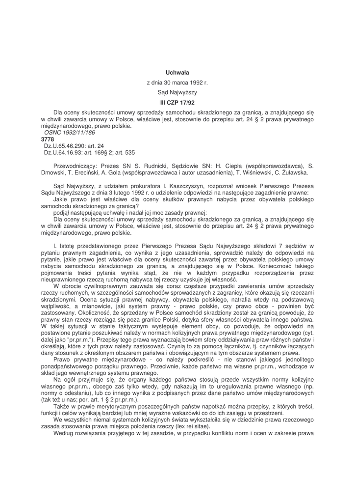 CZP 18/92, maj cej moc zasady prawnej (OSNCP 1992, z. 9, poz. 144). Zwalnia to od omówienia jej w